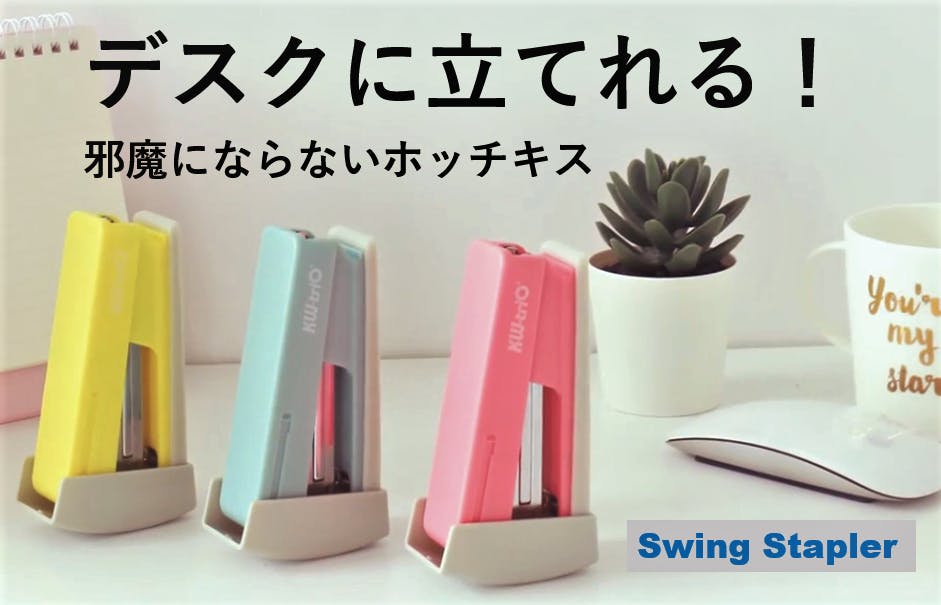 「Swing Stapler」はデスクに立てて置けるホッチキスです。