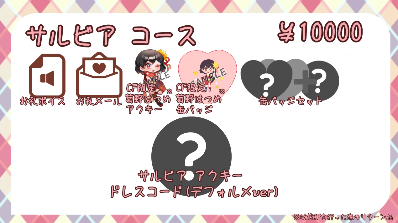 公式サイトクレジット・・・プロジェクトが続く限り、公式サイトの「スペシャルサンクス」としてお名前(ご希望のお名前)が記載されます。
