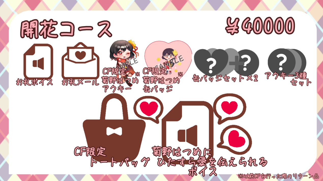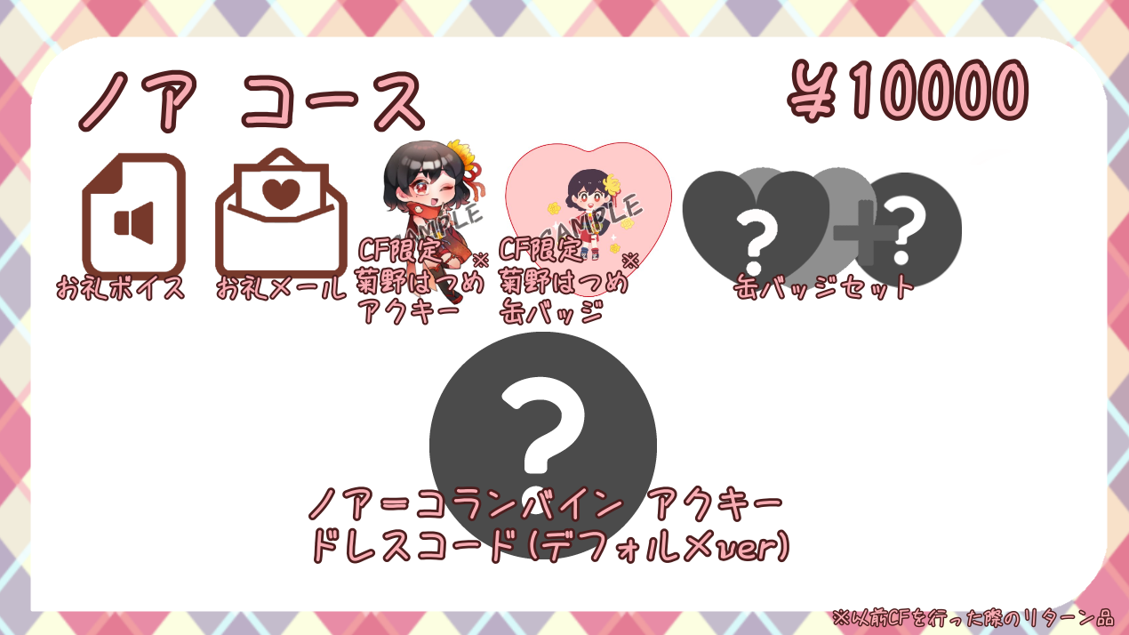 また、リターンとしてご用意するグッズは「CF限定」の表記がなくとも「クラウドファンディング限定」として扱わせていただきます。今後、オンラインショップでの再販はありません。