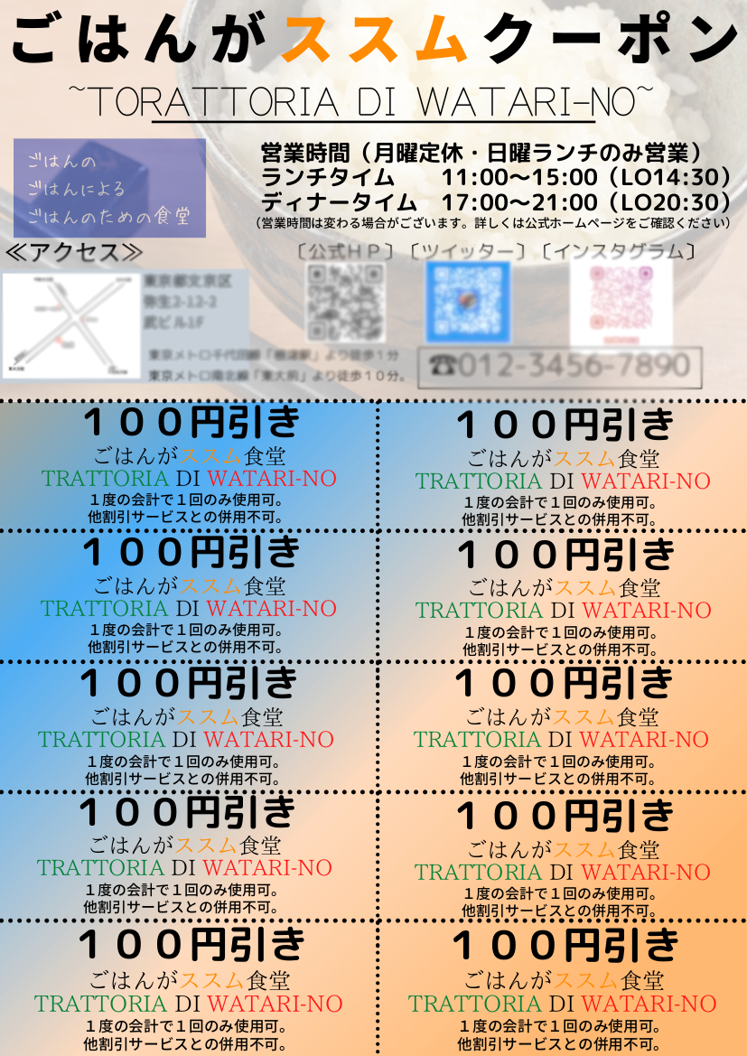 お店の名前は「ごはんがススム食堂~トラットリア ディ ワタリーノ~」