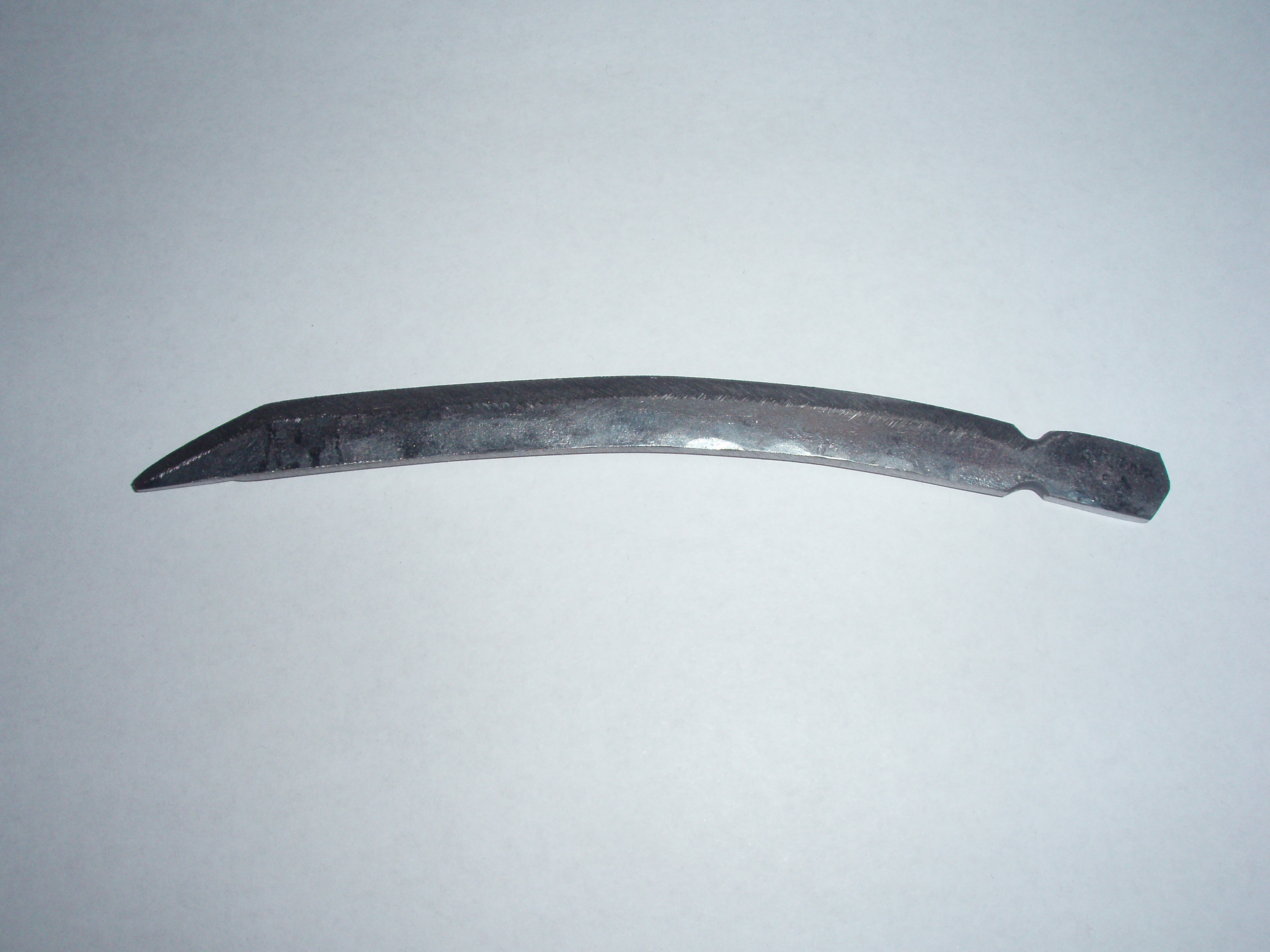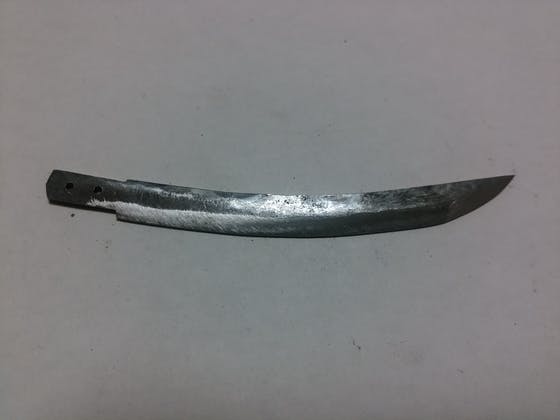 市販されているナイフと比較して軟らかめの材質なので耐摩耗性に劣りますが、研ぎなおしが容易でしかも安価に調達できます。