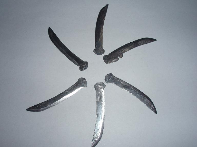 上記4種はコンクリート釘を鍛造して作った釘ナイフ型のミニチュア刀です。