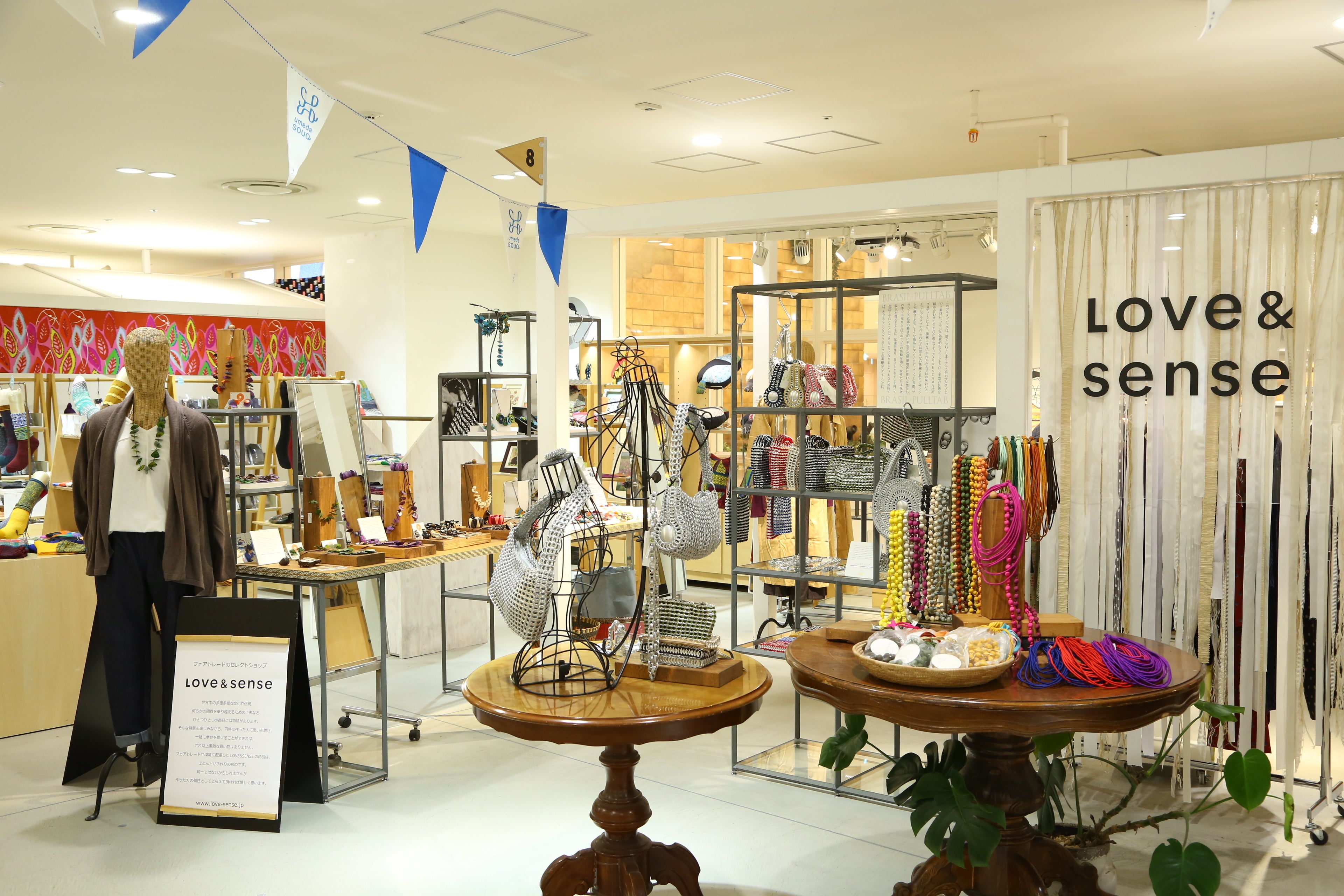 阪急百貨店うめだ本店10階にある、フェアトレードのセレクトショップ「Love&sense」です。