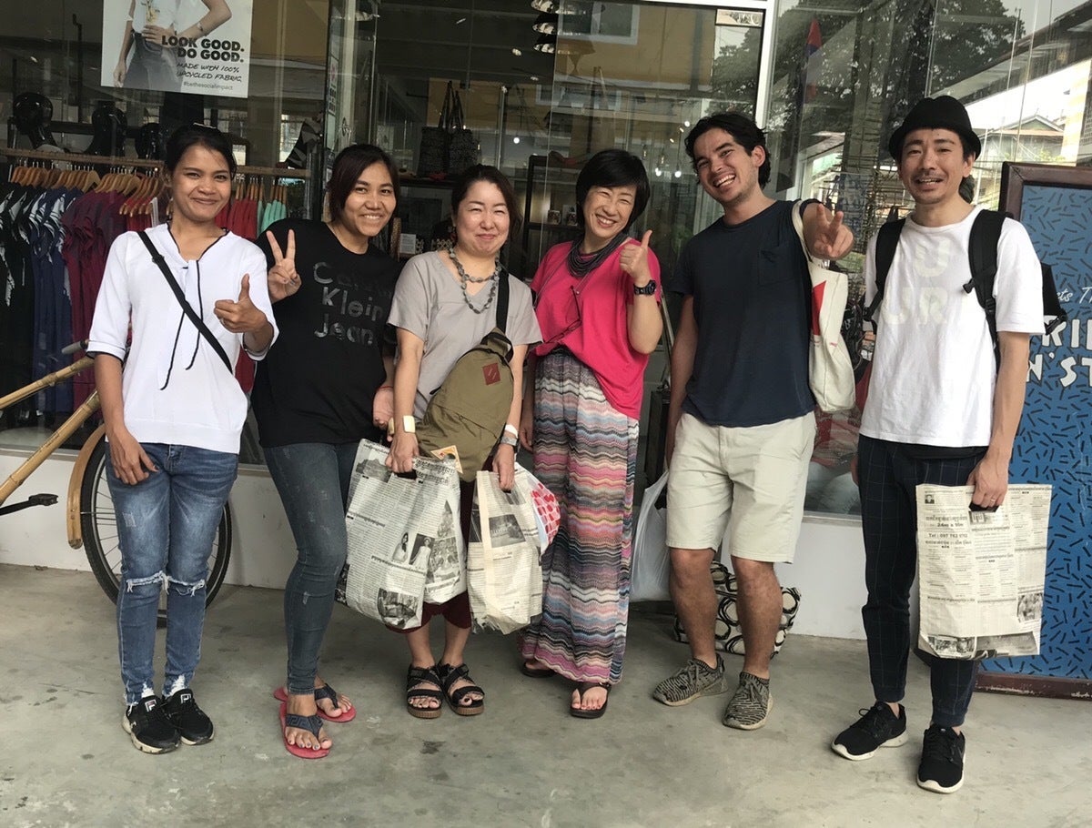 ①「同じ生地が手に入らないカンボジアならではの事情」を長所に変え、人にも地球にもやさしいオンリーワンのバッグを作ります。