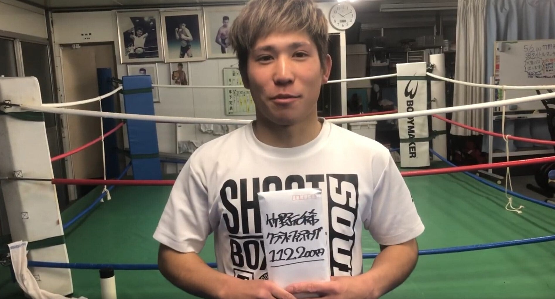 先日は、竹野元稀にご支援いただき、ありがとうございました。新型コロナウイルス感染拡大により、5月初旬に延期されたタイトルマッチも中止となってしまいました。世界中で感染者が増え、医療従事者が懸命の活動をしている中、中止は仕方のないことだと思っています。ご支援いただきました皆様におかれましても、感染には十分にお気をつけください。大変なことも多いかと思いますが、なんとか頑張って乗り越えましょう。ご支援していただきました総額からCAMPIREの手数料を引いた112,200円を竹野元稀にしっかりと手渡した証拠動画です。松浦は着服しておりません(笑)そして、最高のガウンとスパッツができあがったそうです。いつ試合ができるかは、今の所確定しておりませんが、お披露目できる日を楽しみにお待ち下さい。皆様にお約束した竹野元稀応援Tシャツですが、デザインに大会の日にちも入れたいと考えておりましたので、現在、作業をストップしているところです。必ずやカッコいいTシャツを作成し、お届けすることをお約束しますので、もう少しお待ち下さい。今後も竹野元稀の状況や活動を報告させていただきます。どうぞ、応援の程、よろしくお願い申し上げます。