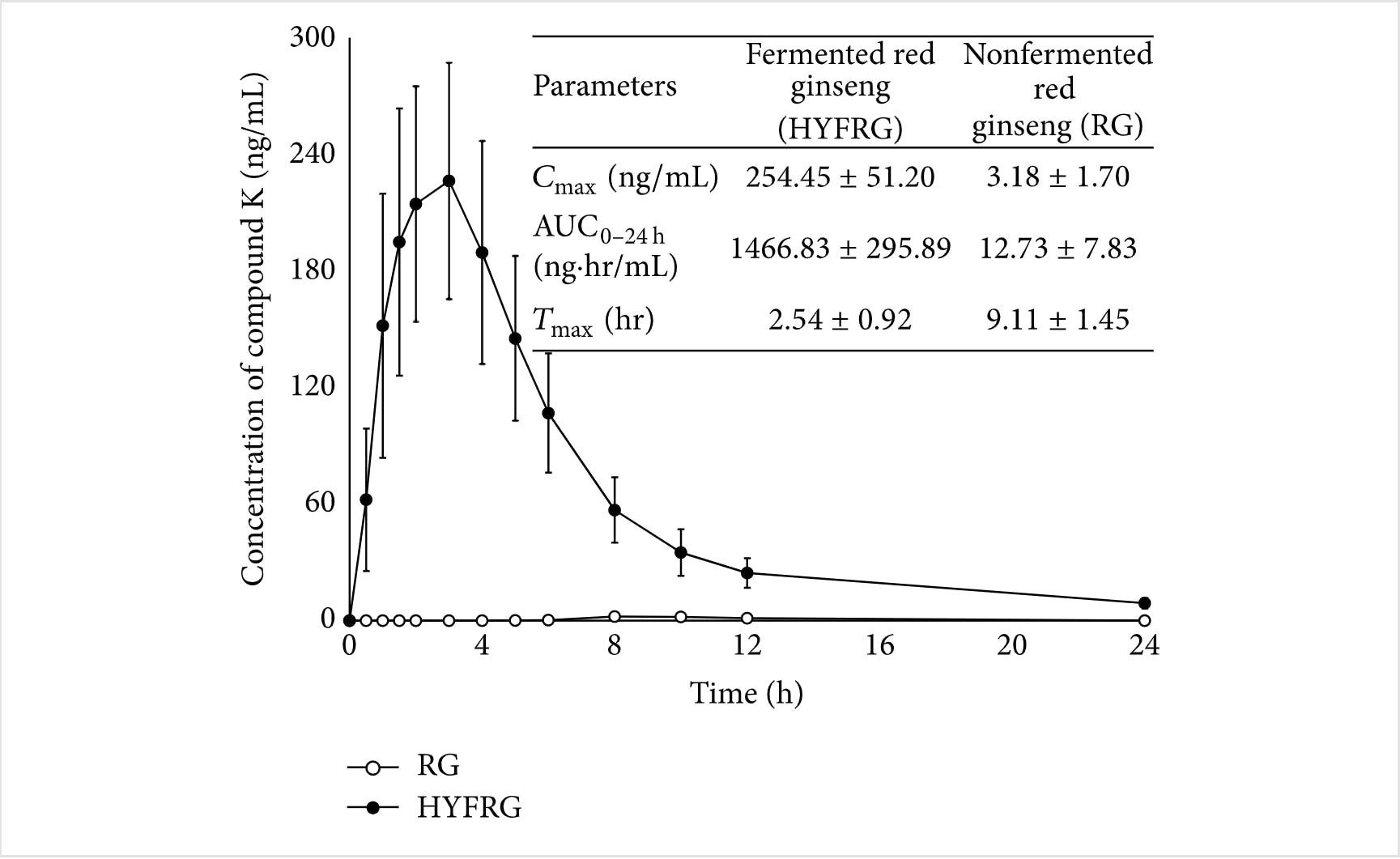 こちらは、ヒンダウィパブリッシングコーポレーションで公開している紅参(RG)と発酵紅参(HYFRG)の違いについて臨床実験を行った結果を元に作成されている論文です。