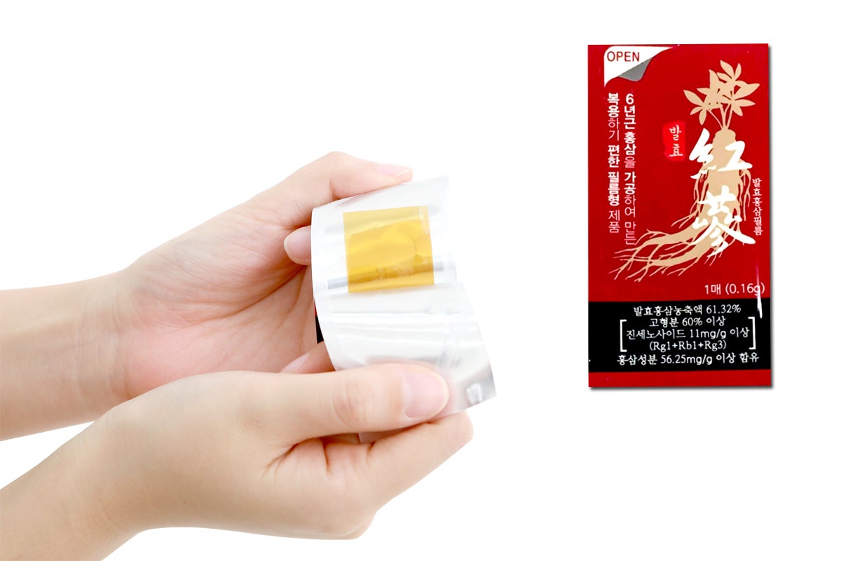 日本の高麗人参市場に衝撃をもたらす発酵紅参シートは、韓国で高麗人参で古くから歴史がある金山という地域で栽培されている6年根高麗人参を利用して、発酵過程を経た後、ODFという体内への成分吸収力を高めながら食べることができるシートに濃縮液を入れて製造しています。