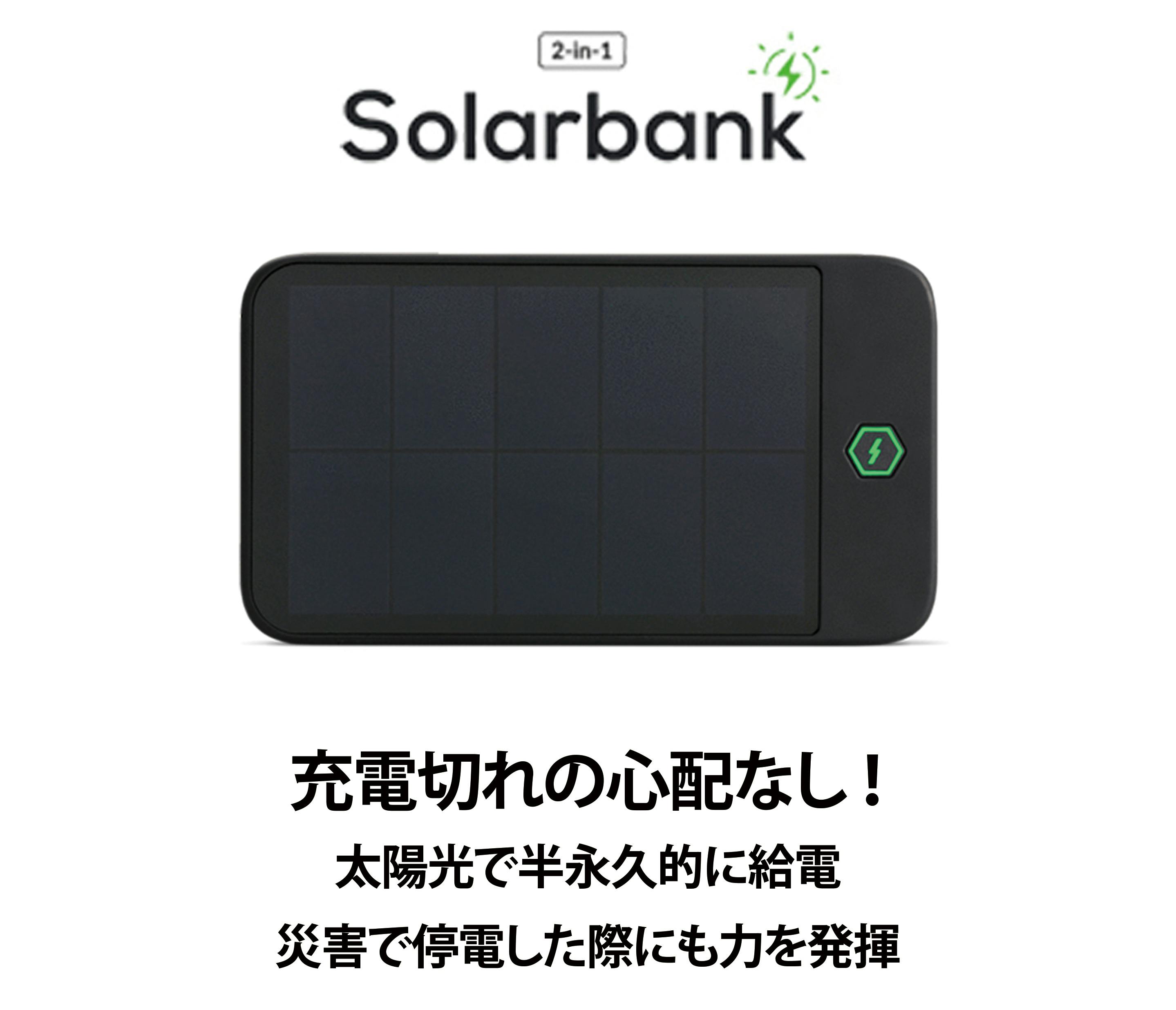 Solarbankは幅広いスペクトルの光で発電が可能なパネルのため、発電量は落ちますが曇りの日でも発電が可能です。