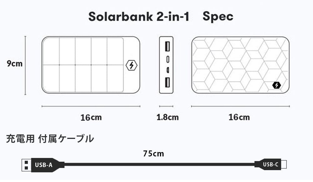 モバイルバッテリーのようにUSBケーブルからSolarbankを充電することも可能です。