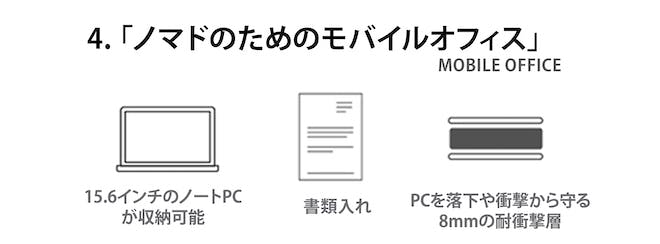 LIFEPACK2.0は場所に縛られず自由に働くノマドやリモートワーカーのための最新の「モバイルオフィス」として必要な機能を備えています。