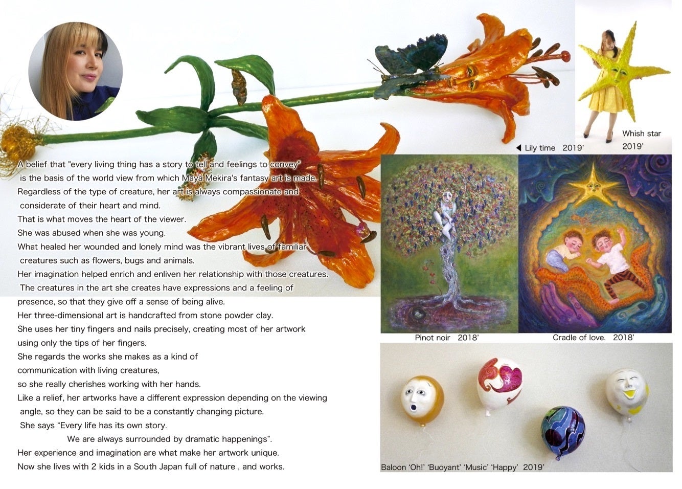 ファンタジーな世界観の芸術を追求し、命の輝き、感情の大切さを伝えています。