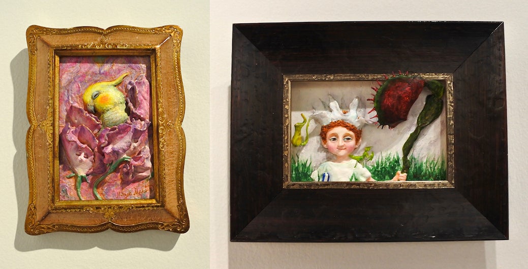 近年では絵画に粘土や樹脂の造形を組み合わせた表現方法を研究し、彫刻も発表しています。