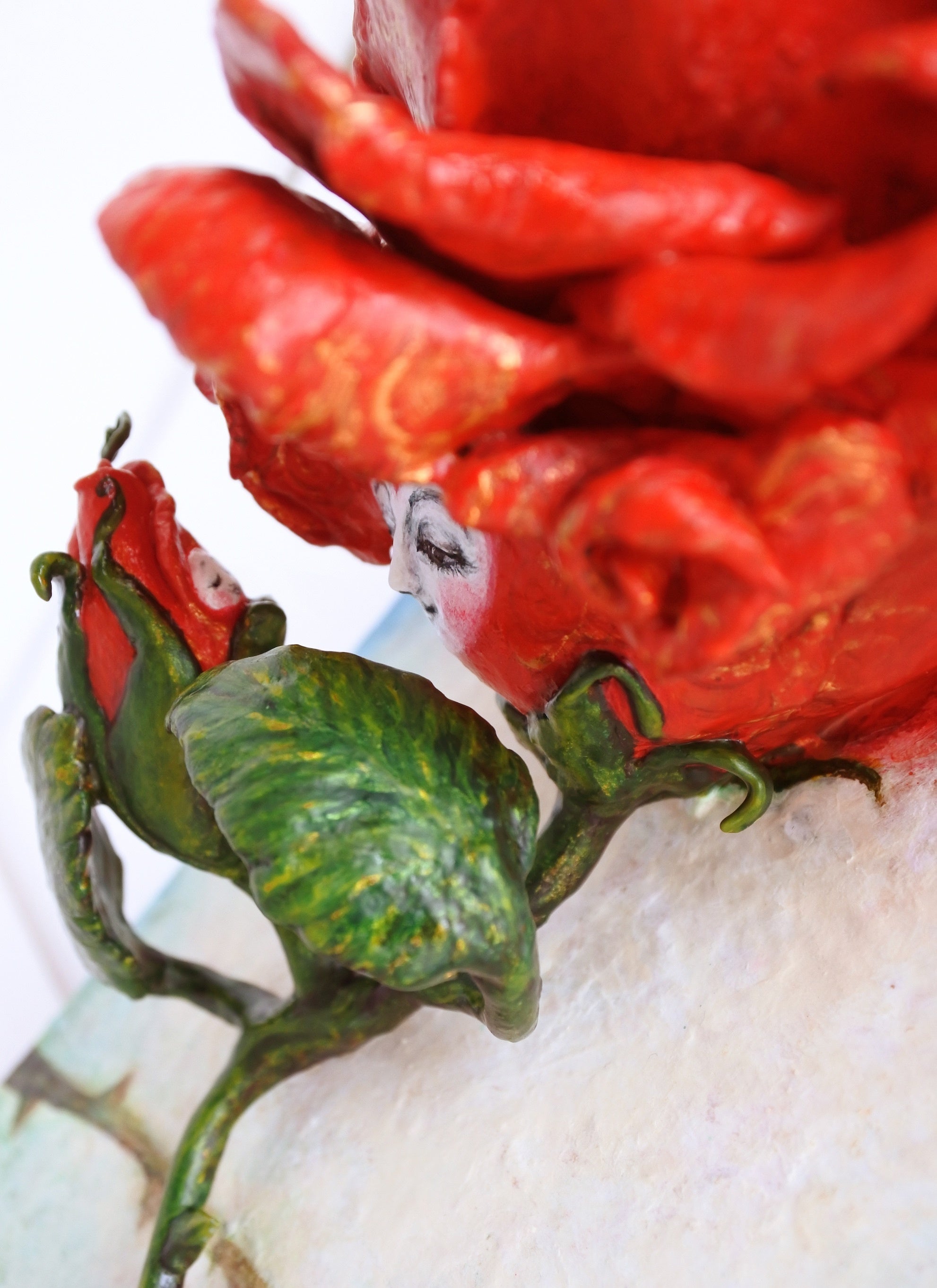 花にも感情がある。真っ赤なバラを親子に見立て、母の強い愛をバラで表現しています。