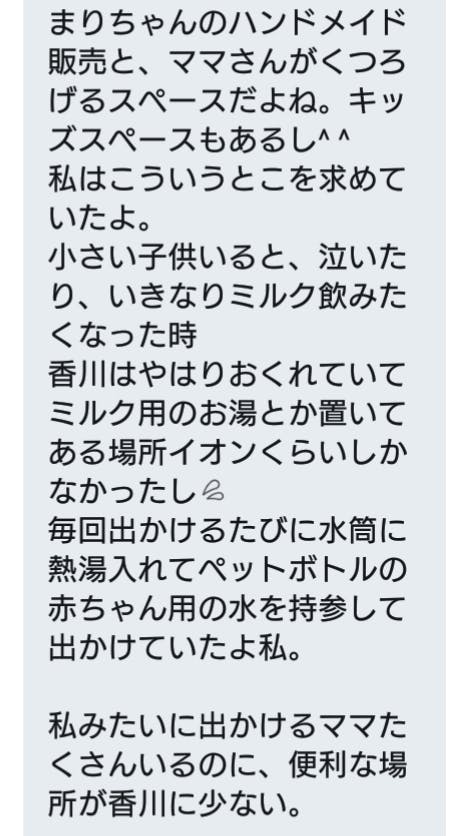 その夢をじっくり1年かけてコンセプトをどうしようかとか考え、香川県は子育てママさんが立ち寄れる場所が圧倒的に少ないなと感じました。