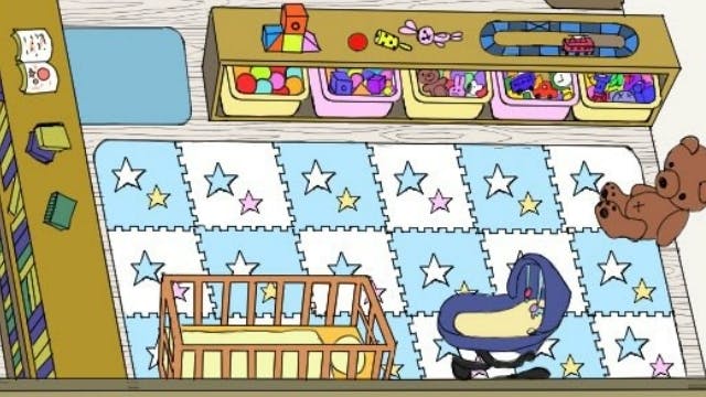 ベビーベッド・バウンサー常備。赤ちゃんが喜ぶおもちゃ、ぬいぐるみや絵本あり。