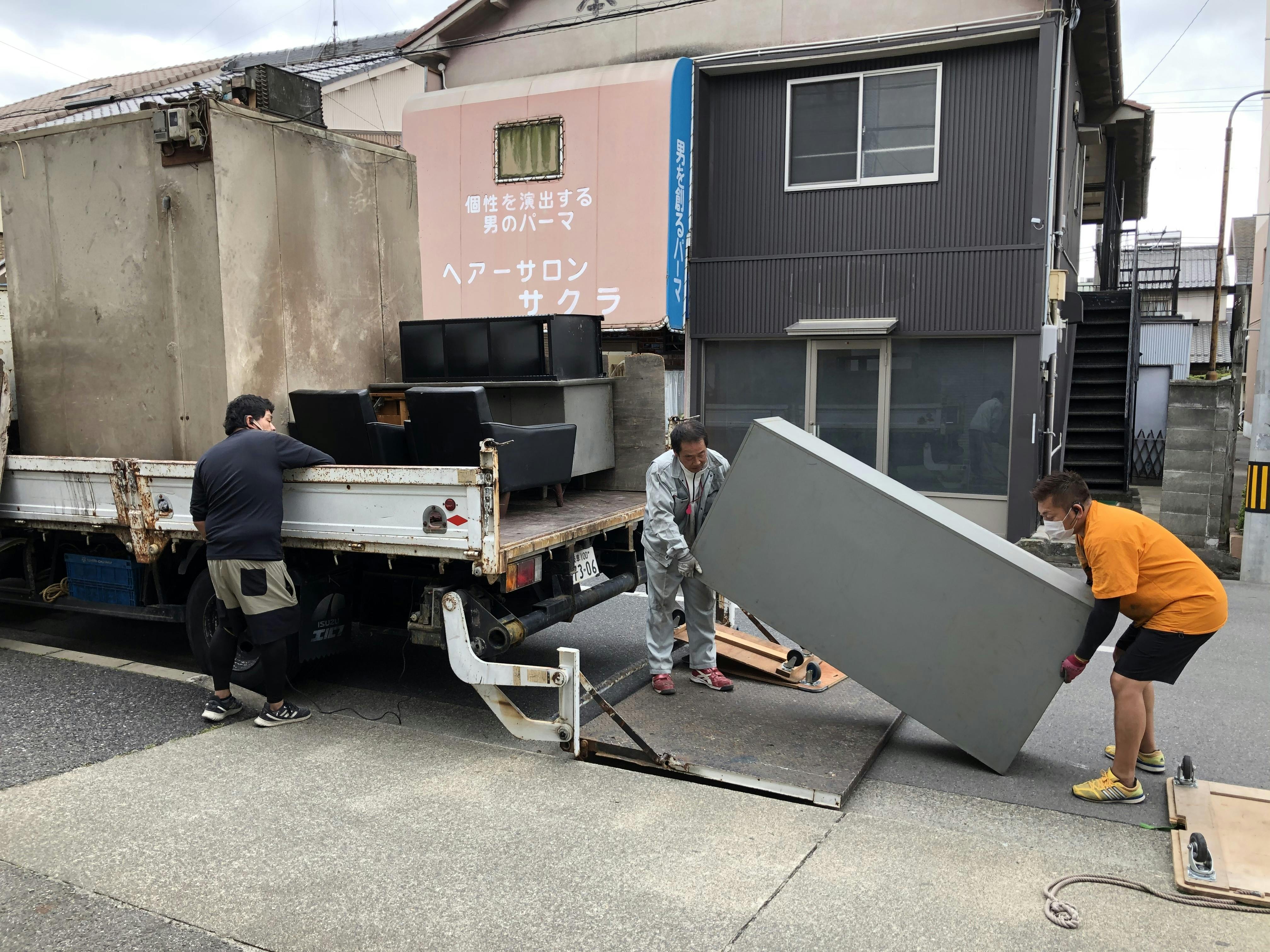 本日の午前中に倉庫内のプレハブ冷蔵庫や不用品を撤去しに来て頂きました。