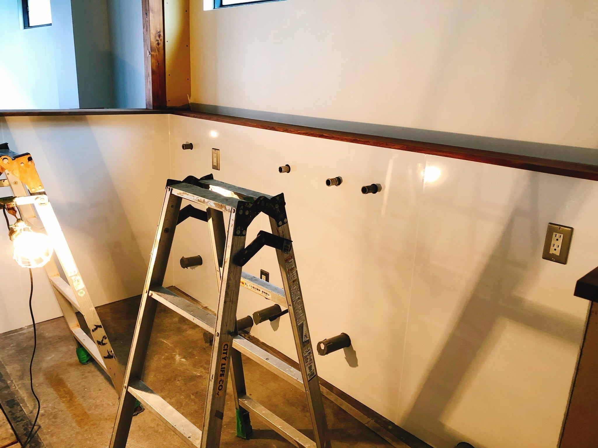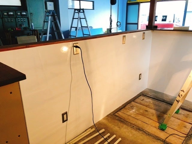 トイレの扉、厨房の内側のパネルも付いて、だんだんと完成に近づいてきました♪♪