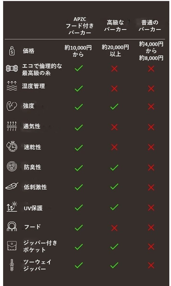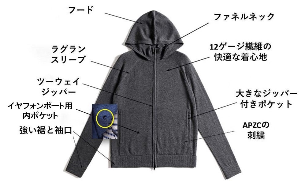 APZC - 環境に優しく、機能性をもったフード付きパーカー