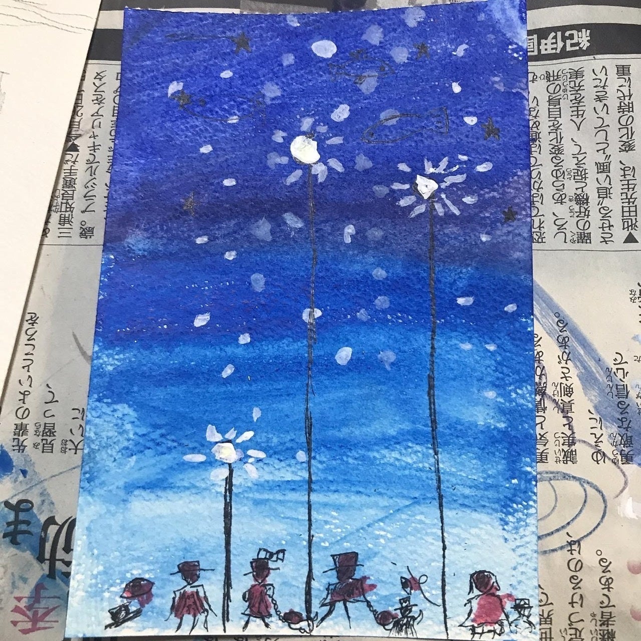 ※点描画は全て水彩ペンで描いております。日当たりの良いところはお避け下さい。
