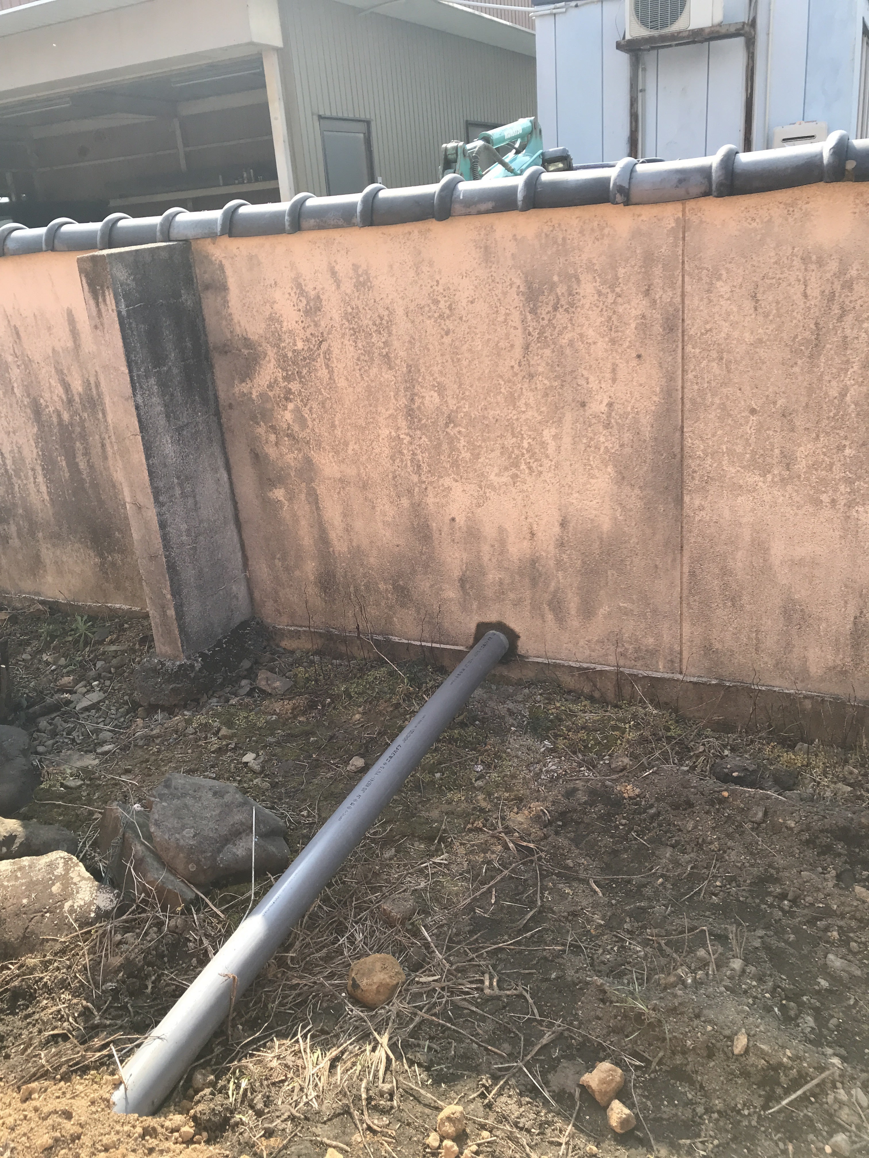 実家の敷地内にある下水管から工房まで管を繋ぎます