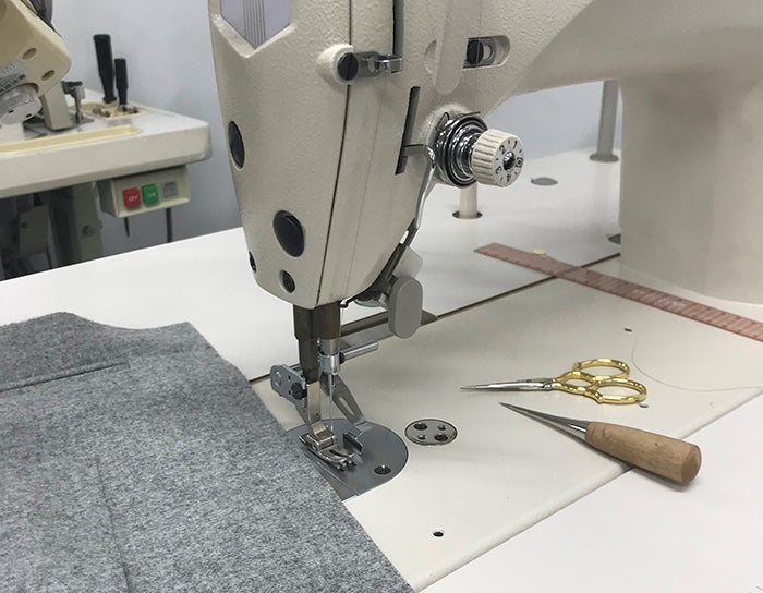 皆さまにものづくりを感じていただく場として店内に縫製工場(アトリエ)を出現させ、そこで職人が服を作る過程をご覧いただきます。もちろん気になるところはじっくりとご説明いたします。