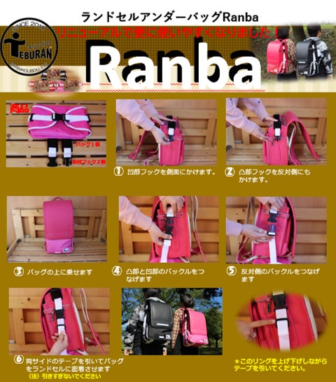 過去には『スーパーJチャンネル』でも取り上げられた小学生の便利グッズ、知的財産権も取得したオンリーワン商品。何とかして小学生を手ぶらで通学させてあげたい。その思いを形にした商品がランドセルアンダーバッグRanba(ランバ)です。長距離通学するお子さまがストレスフリーで登下校が可能になり、雨の日には傘も指すことが可能になります。このランドセルアンダーバッグRanba(ランバ)は困っている子供たちのお役に立てられればうれしい限りです。