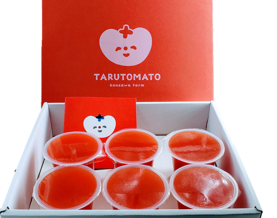 トマトの商品をいくつか作らせていただく中に、「TARUTOMATOギフト(上の写真)」というギフト商品を販売させていただいているのですが、お客様より「よりお手頃価格の手土産があったらなぁ」のお声をいただくことが多々ありました。そこで、暖かくなるこの時期に合わせて爽やかな「トマトゼリー」を作ることといたしました。2,000~3,000円程度のギフト箱を想定しておりますので、お中元やちょっとした手土産にも使いやすい商品を目指して目下計画中です。