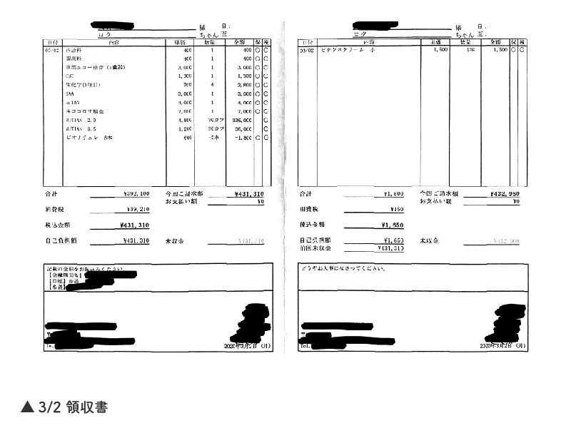 最初は1日につき9600円、途中18日目から体重が増えたため1日につき10800円、また体重が増えたら増量するためさらに値段があがってしまいます。この薬を84日間、、絶対にロクを救いたいと思いすぐに治療を決断したものの、現実的には決して安い値段ではありません。