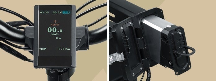 48V 14.5Ahモデル (696Wh) は最大40~60マイル (64キロ~97キロ) までアシスト走行可能*