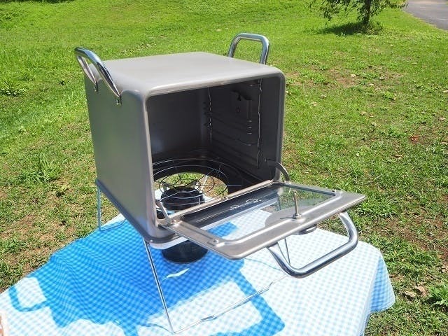 アウトドア料理・キャンプ飯といえばバーベキューが主流になっています。私自身もよくバーベキューをやるのですが、 バーベキューばかりで何かほかの料理ができないかと思っていたので、持ち出せるオーブンに感動さえ覚えました。特にお肉を回せる(ロティサリー)できることが凄い!と思ったのです。