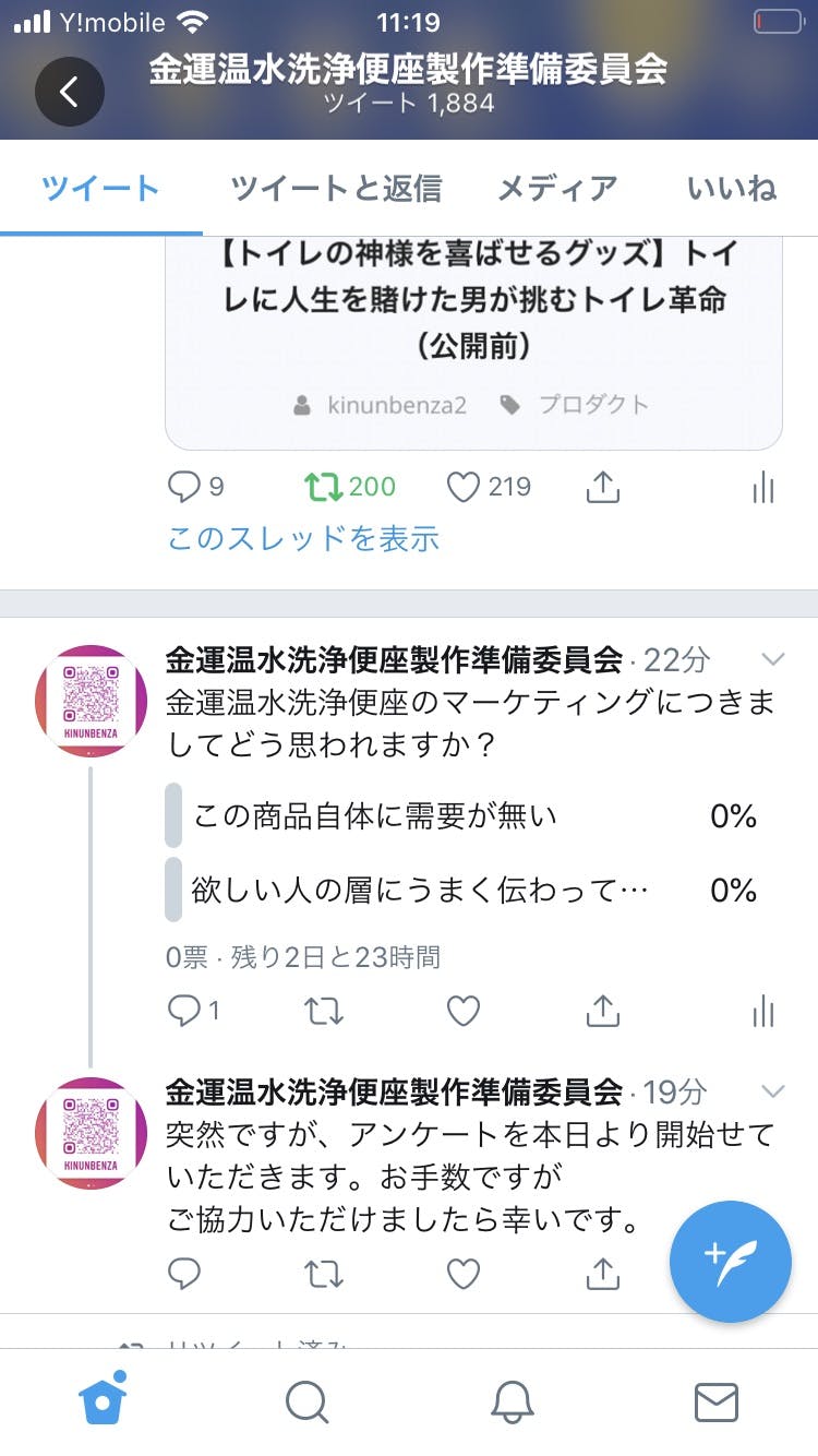 Twitterにて金運温水洗浄便座のマーケティングにつきまして本日より3日間アンケート調査を実施させていただきます。お手数をおかけしますがご協力頂けましたら幸いです。https://twitter.com/kinunbenza/