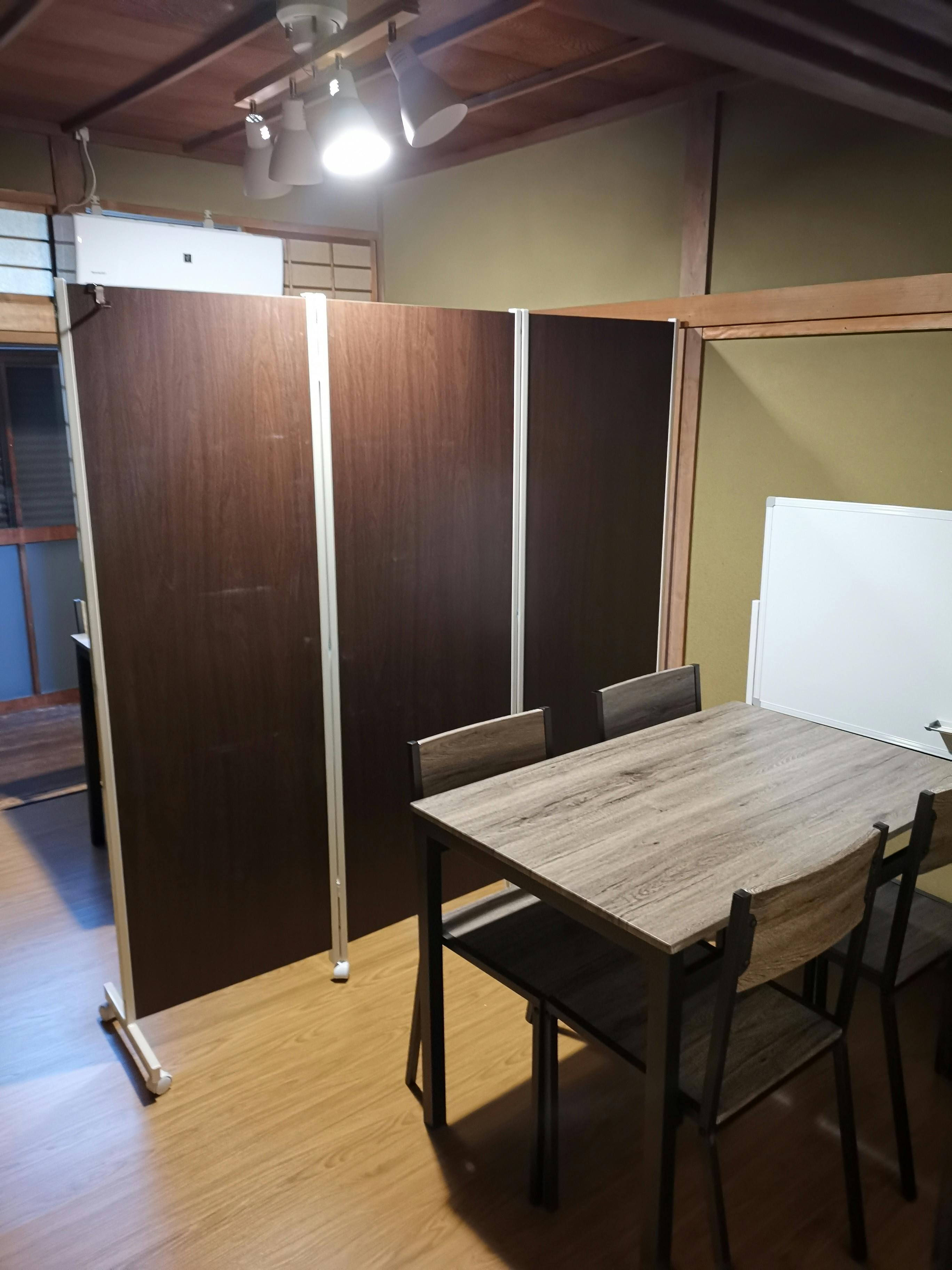 フローリングマットにテーブルセット×2、ホワイトボード×2、パーテーションを置きました。ありがとうございます。
