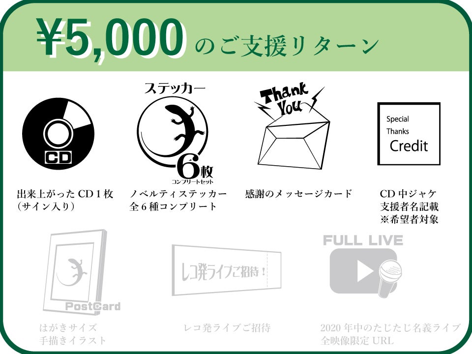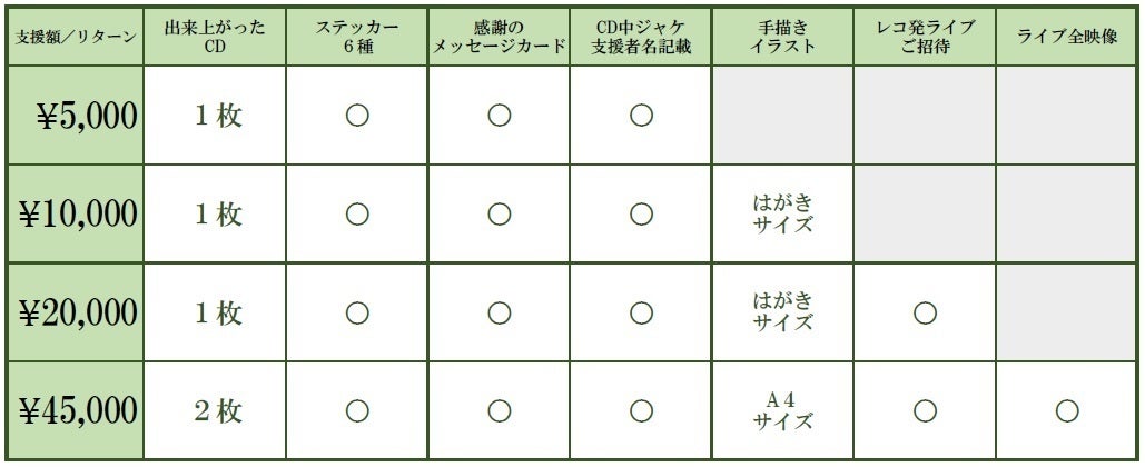 出来上がったCD(価格2000円)をリターンとしますので、5000円からの募集となります。