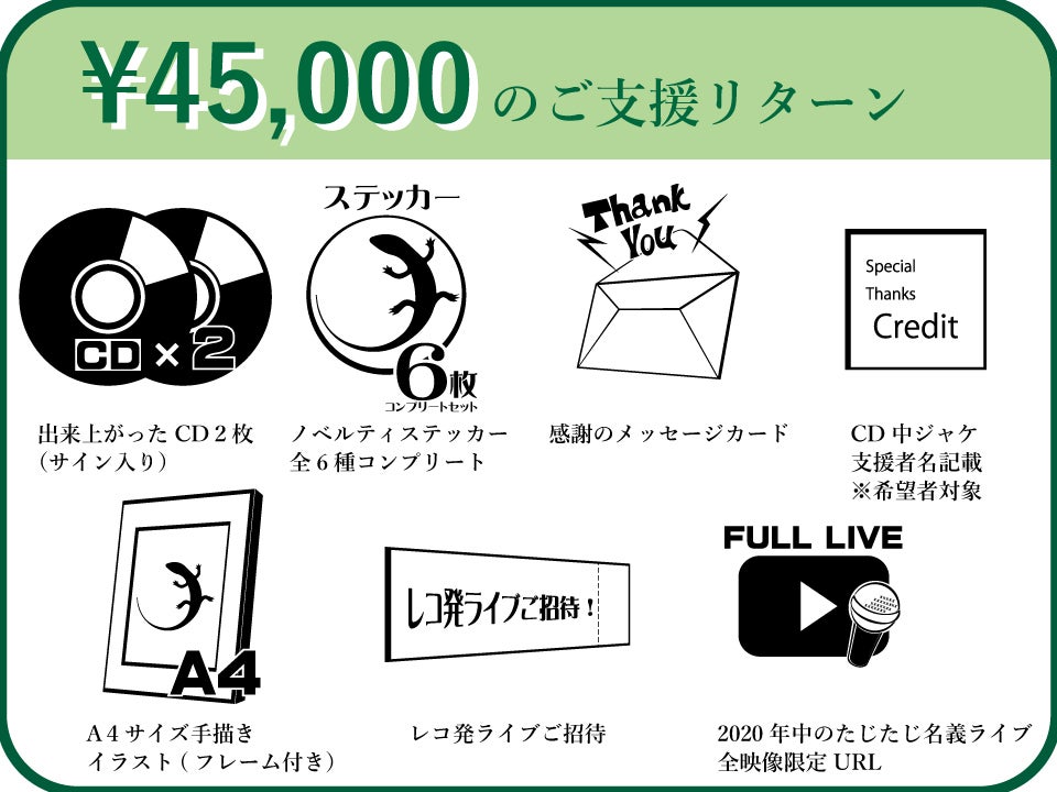 予定や都合が合わなくてライブに行けない、でも観たい…と思ってくださる方向けに、たじたじ名義のすべてのステージの録画を限定URLでお送りする、といったリターンもありますのでご検討ください。