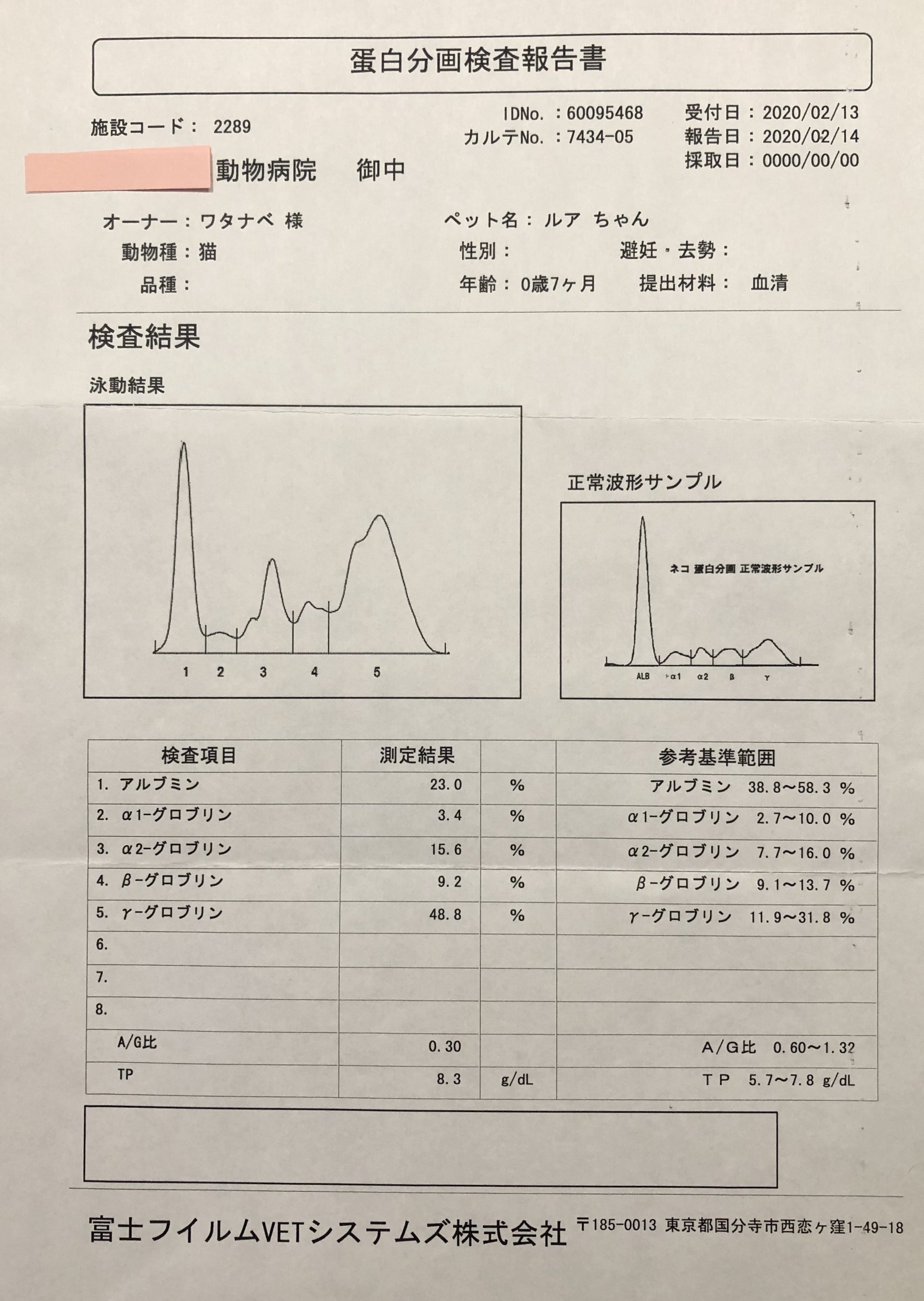 元気だったるあが、原因不明の下痢が1週間ほど続きました。動物病院で下痢の治療を受けましたが、改善されず、血液検査をした所、以下の異常がありました。