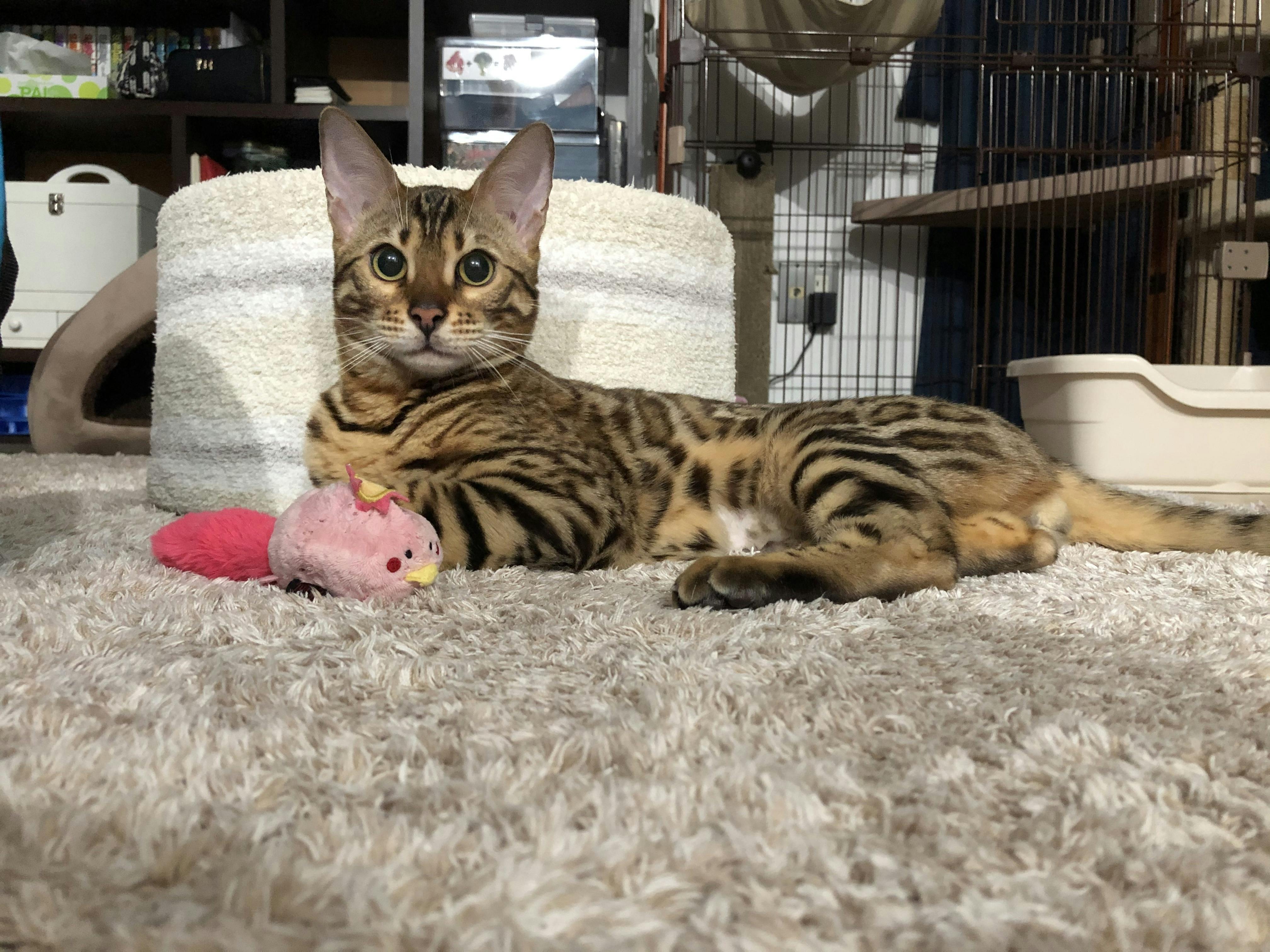 るあの様子は、よく走り、高くジャンプしたり、おもちゃを追いかけて「これは僕の物だ!」と言わんばかりにおもちゃをくわえながら唸ったり(笑)、相変わらず元気に過ごしています!