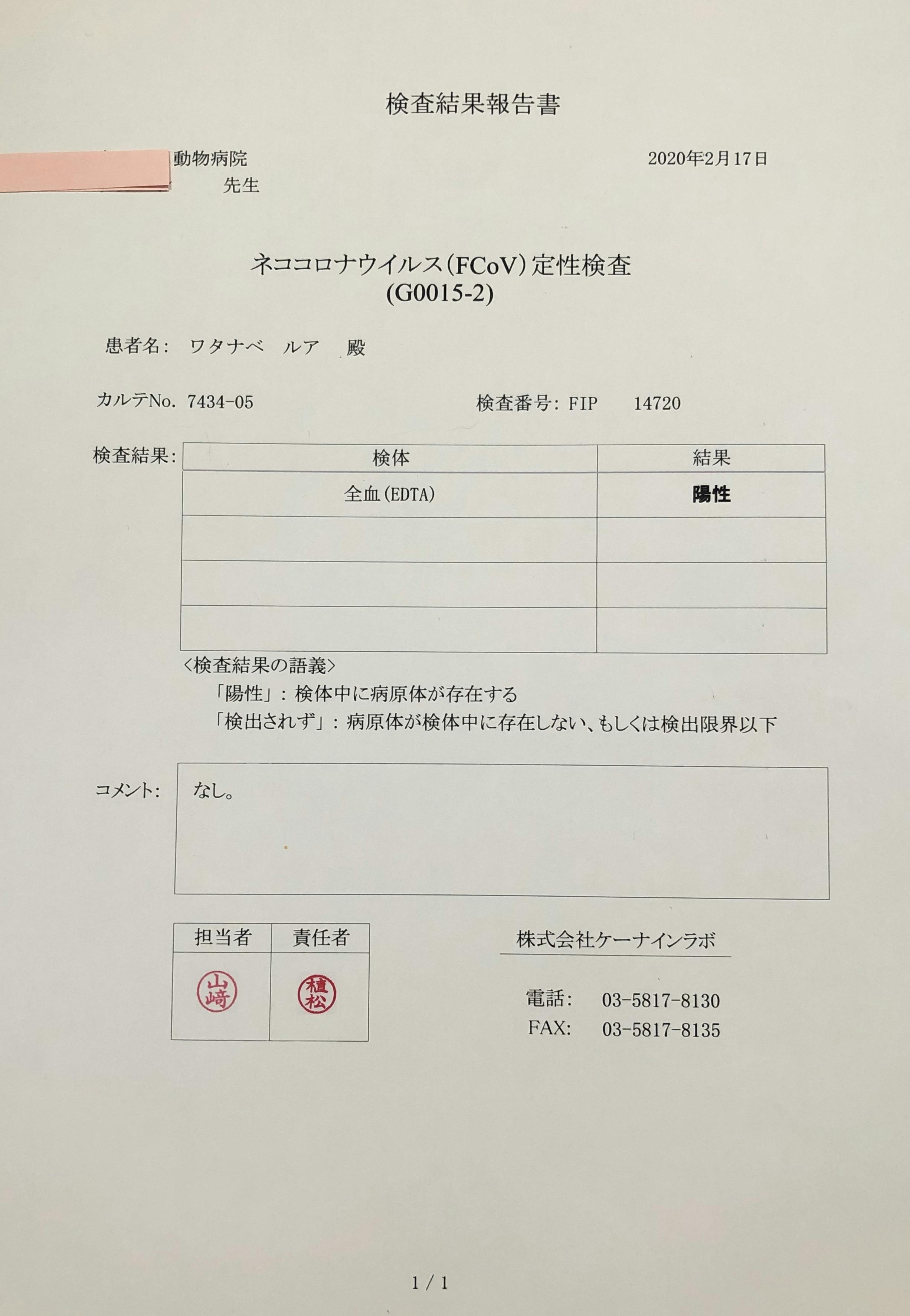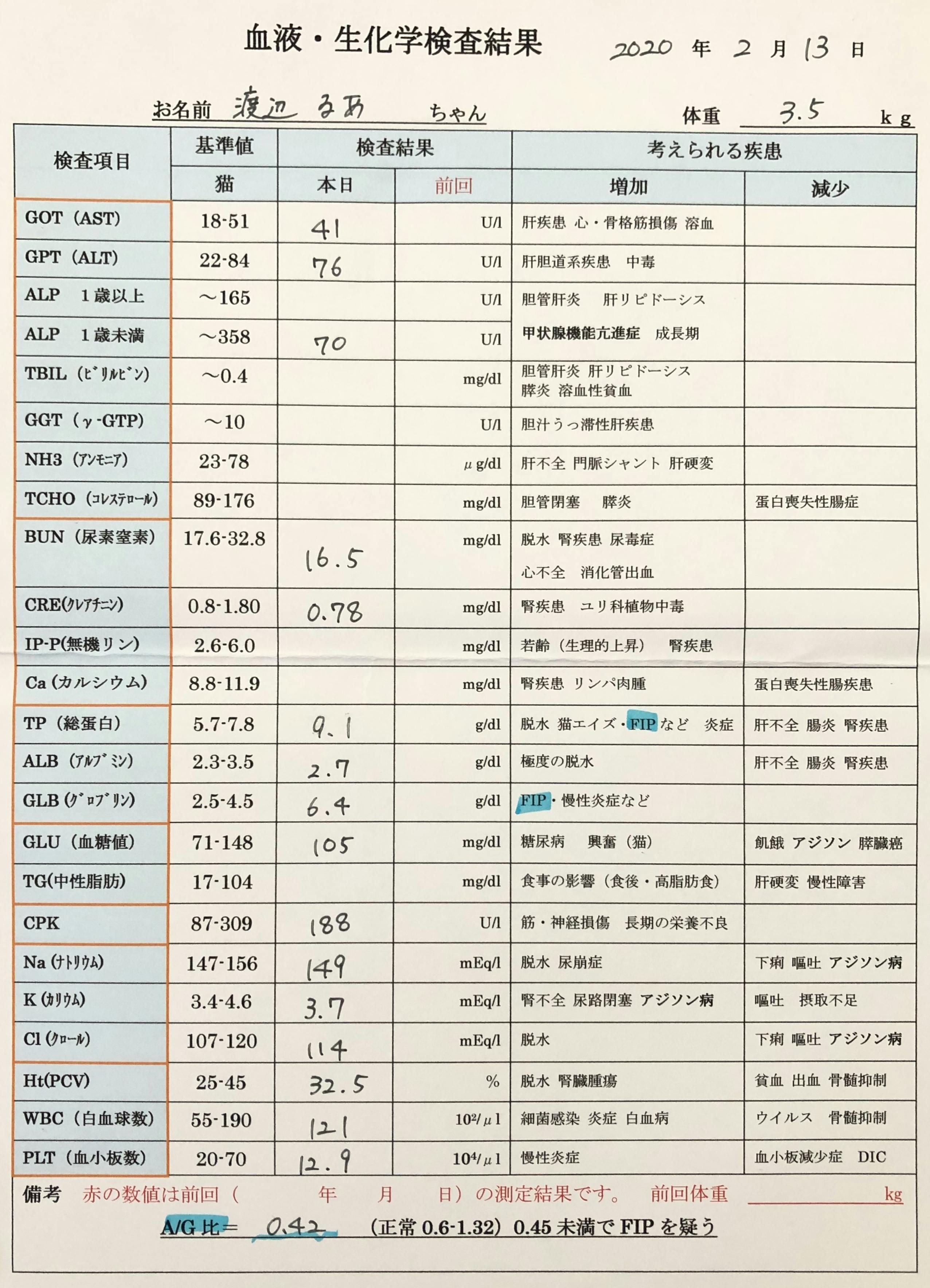 さらに精密検査をして頂き、FIPのドライタイプと診断されました。