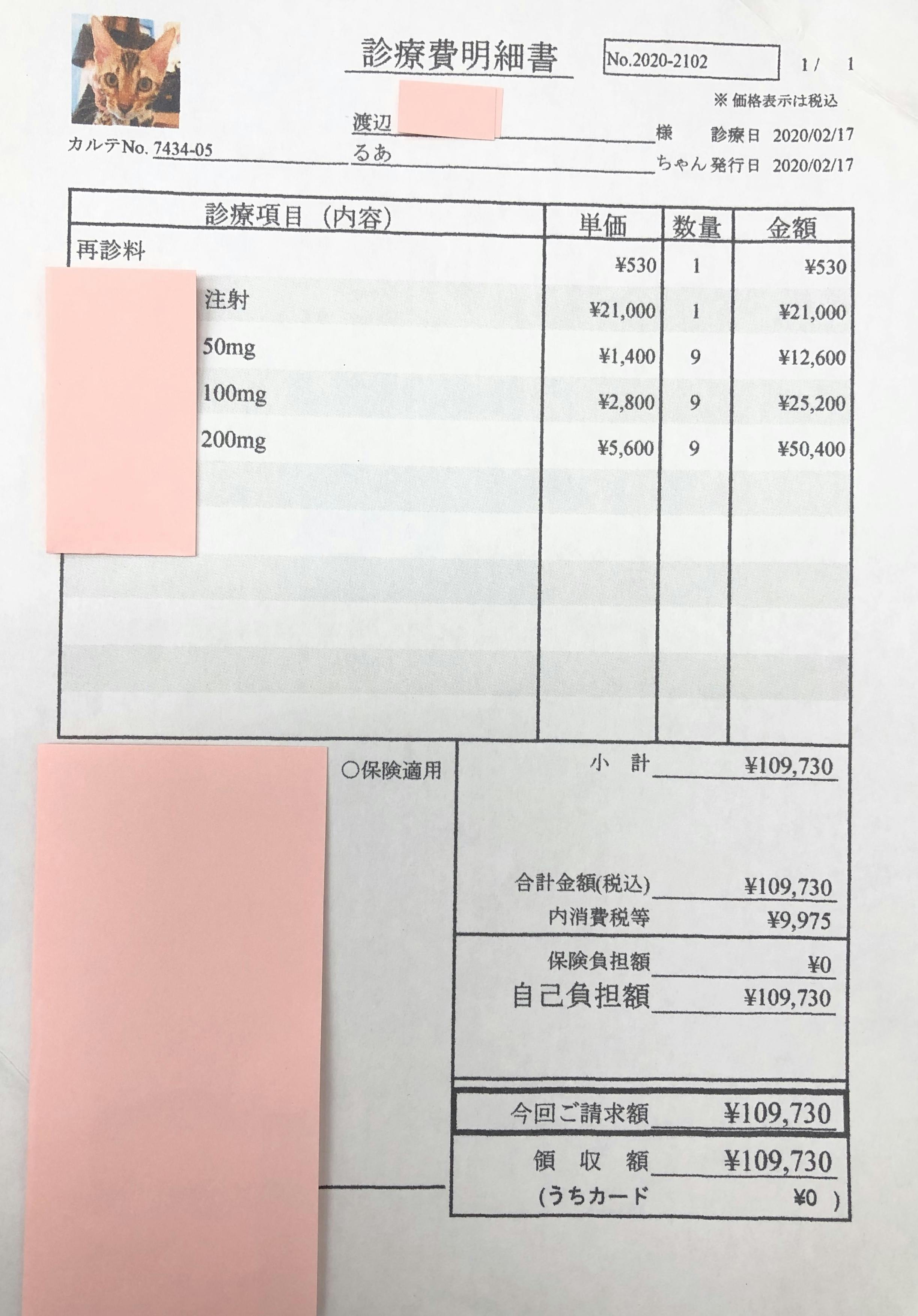るあは現在、体重3.45Kgのため12週間の投与で最低でも、67万円の費用がかかるとの事でした。