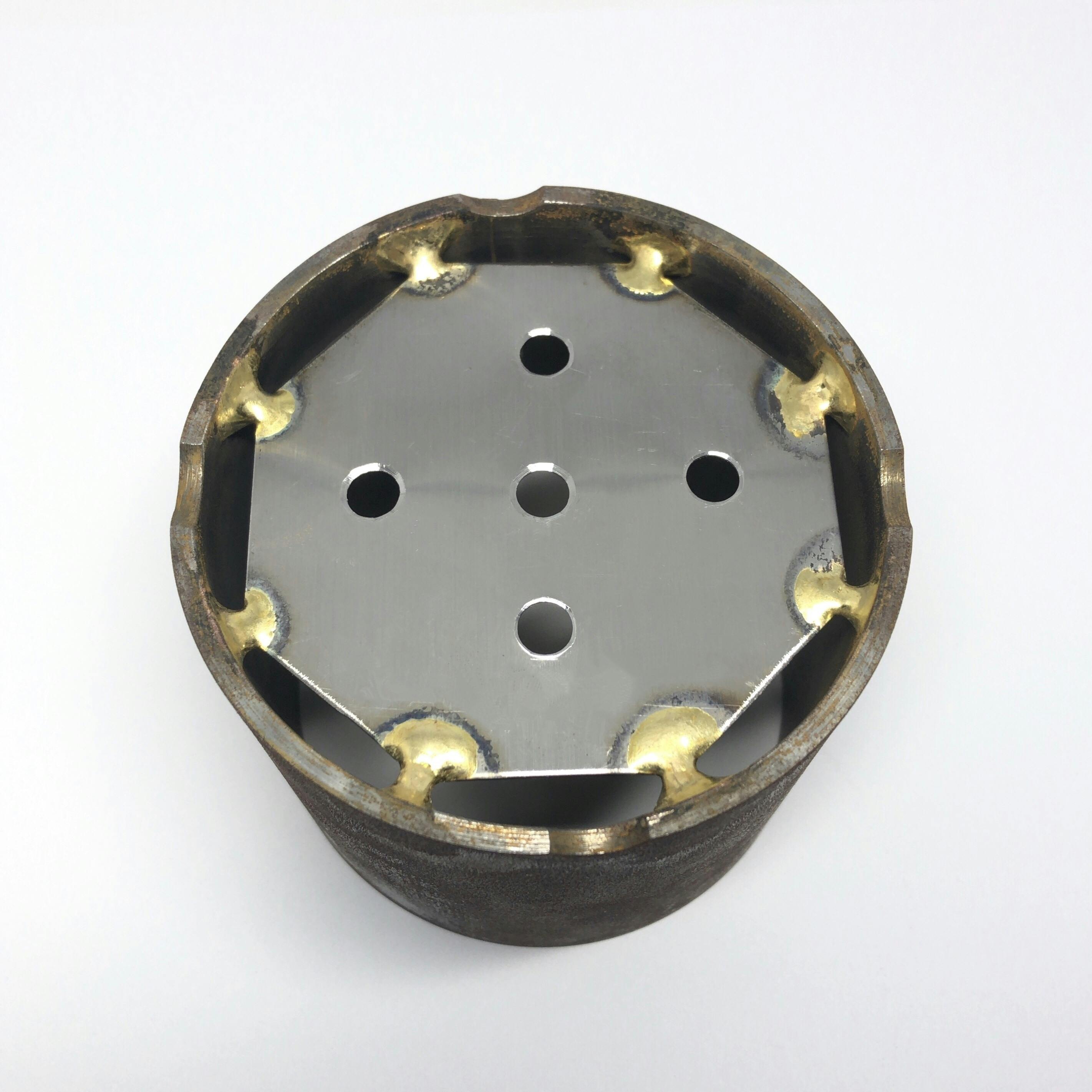 底面板と側面は異種金属となるので、異種接合にも適した古き良き手法のろう付けという技法で溶接接合しています。