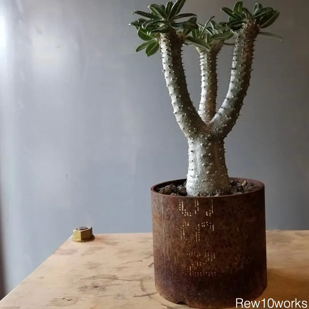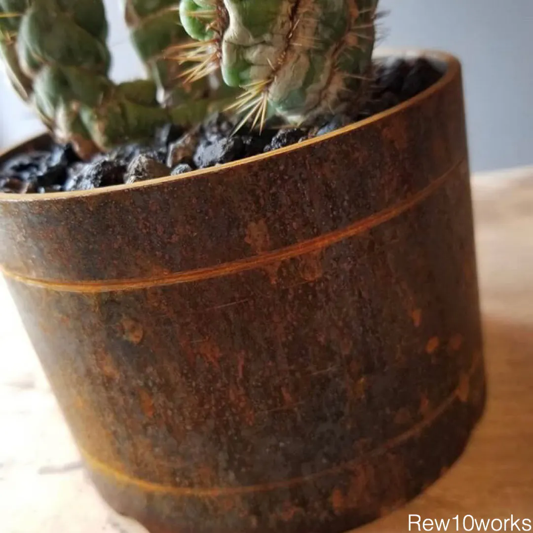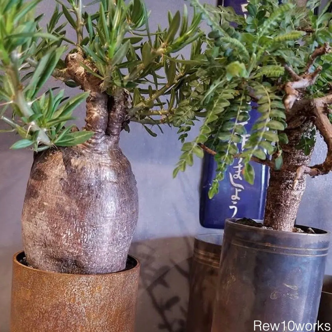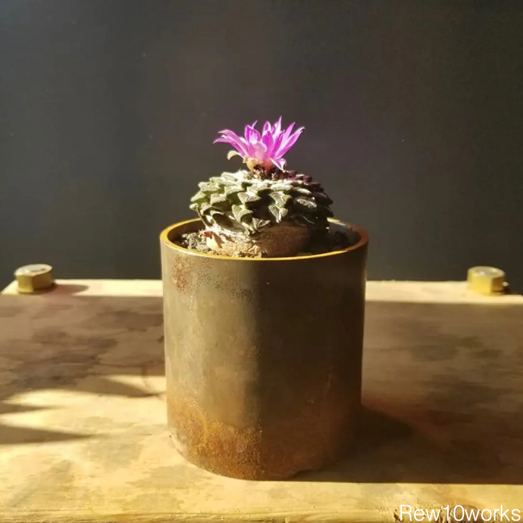 植物と同じように、環境や自分の関わり方が反映されるような自分だけの一鉢がほしいと思い、Rew10worksさんにヴィンテージ金属鉢製作をお願いしました。