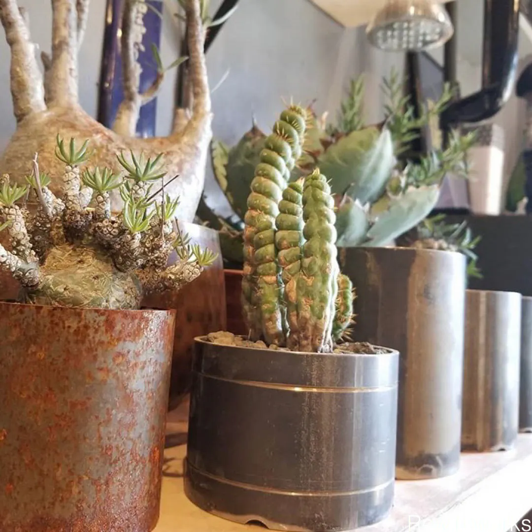 金属で温まりやすいため、多肉植物、サボテン、塊根植物との相性も抜群。