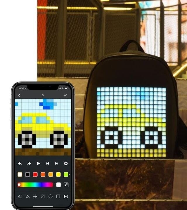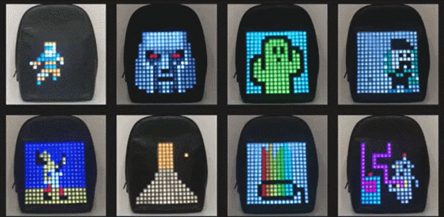 これらの素晴らしい提案の中の一つが、弊社のピクセルアートLEDパネル付きのバックパックでした。