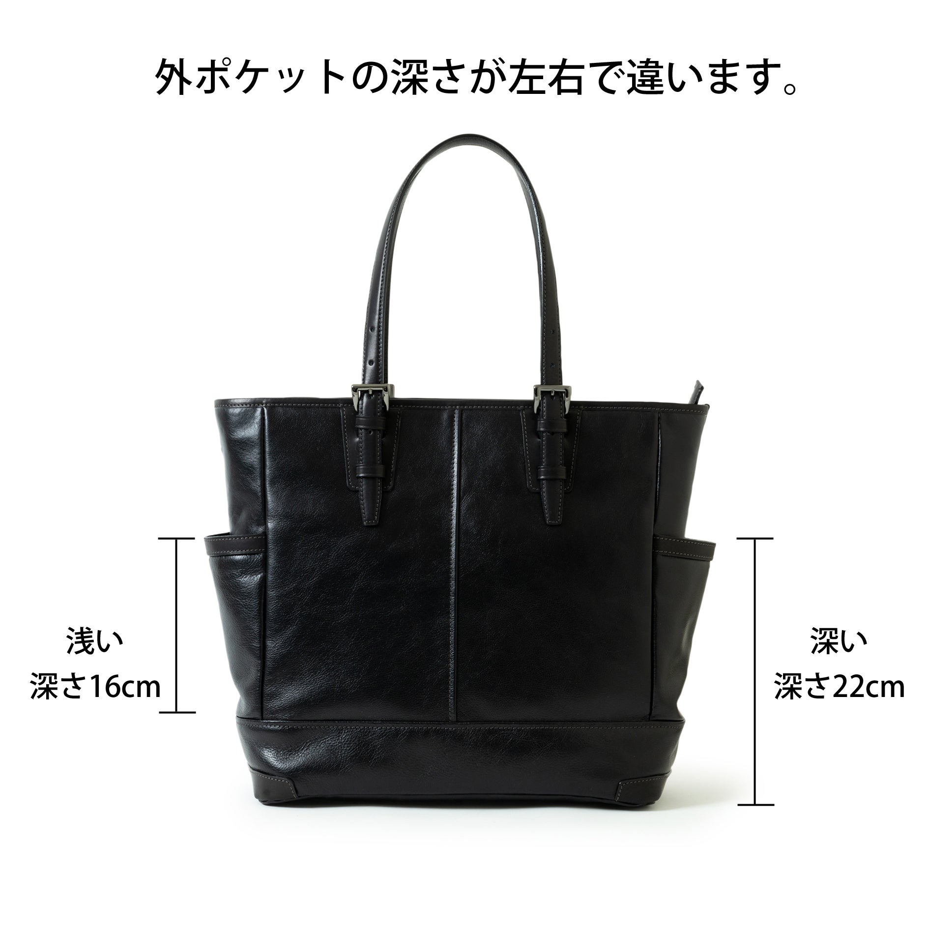 両サイドに付いているポケットの深さを右左で変えました。