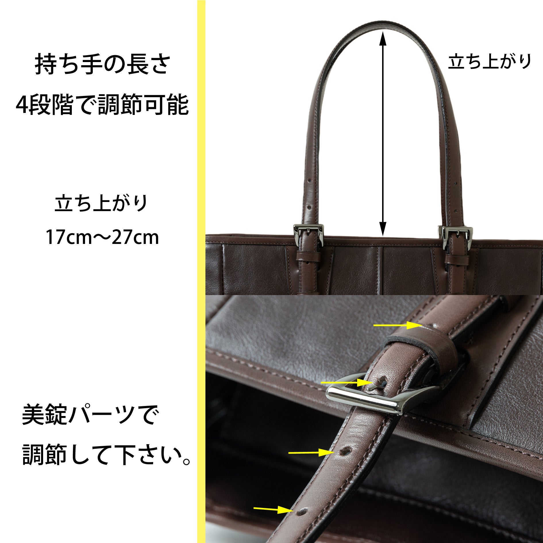 (持ち手の立ち上がり17㎝~27㎝で調節が可能です。)
