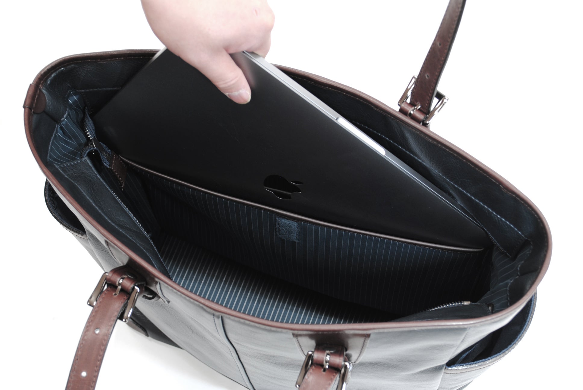 INNFITHの顔でもある中央の切り返しがアクセントになっている、重厚感のあるしっかりとしたトートバッグです。使いやすいシンプルなデザインでビジネスでもプライベートでもお使い頂けます。