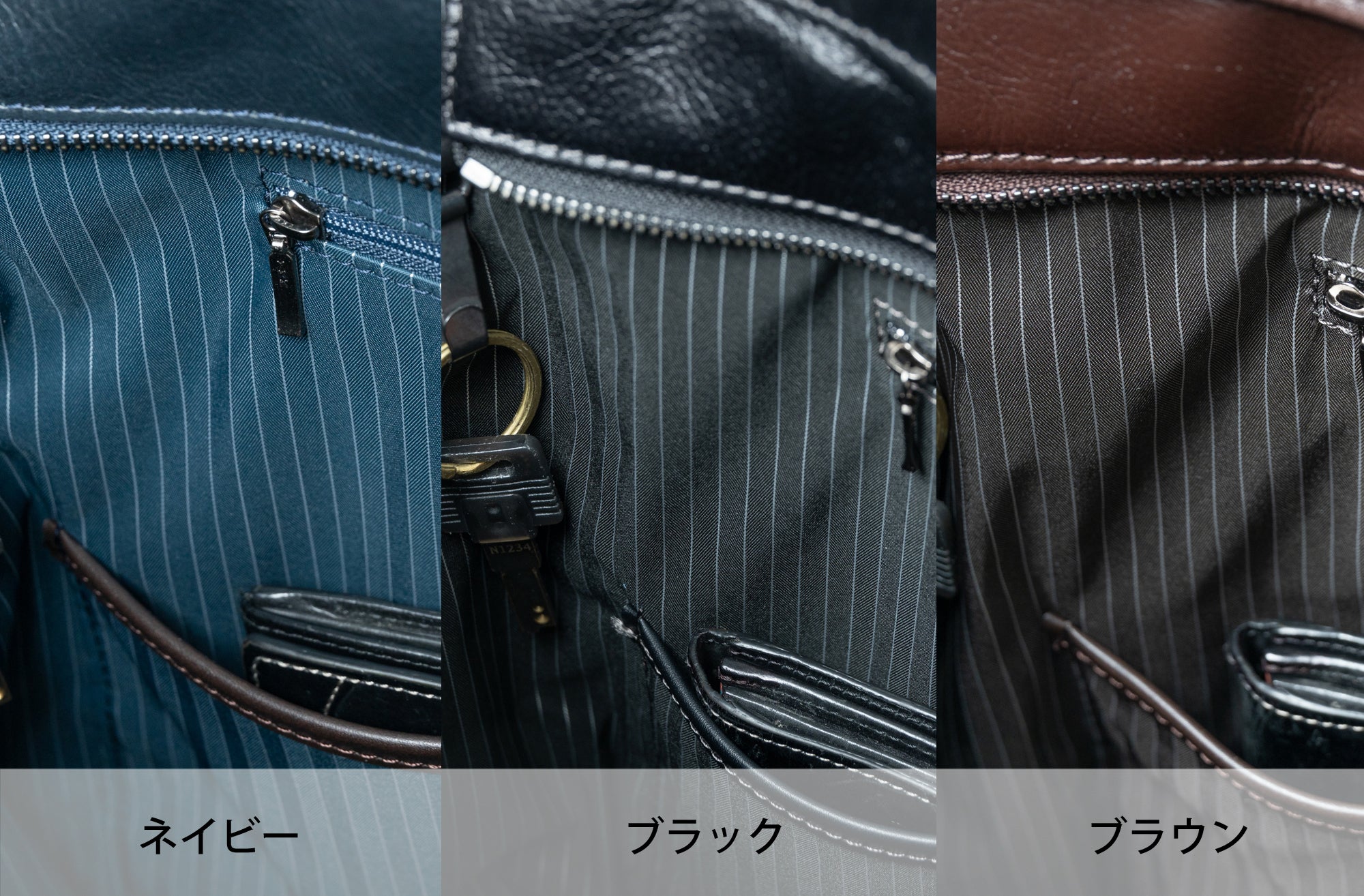 本体革の色に合わせて裏地の色もそれぞれ異なります。
