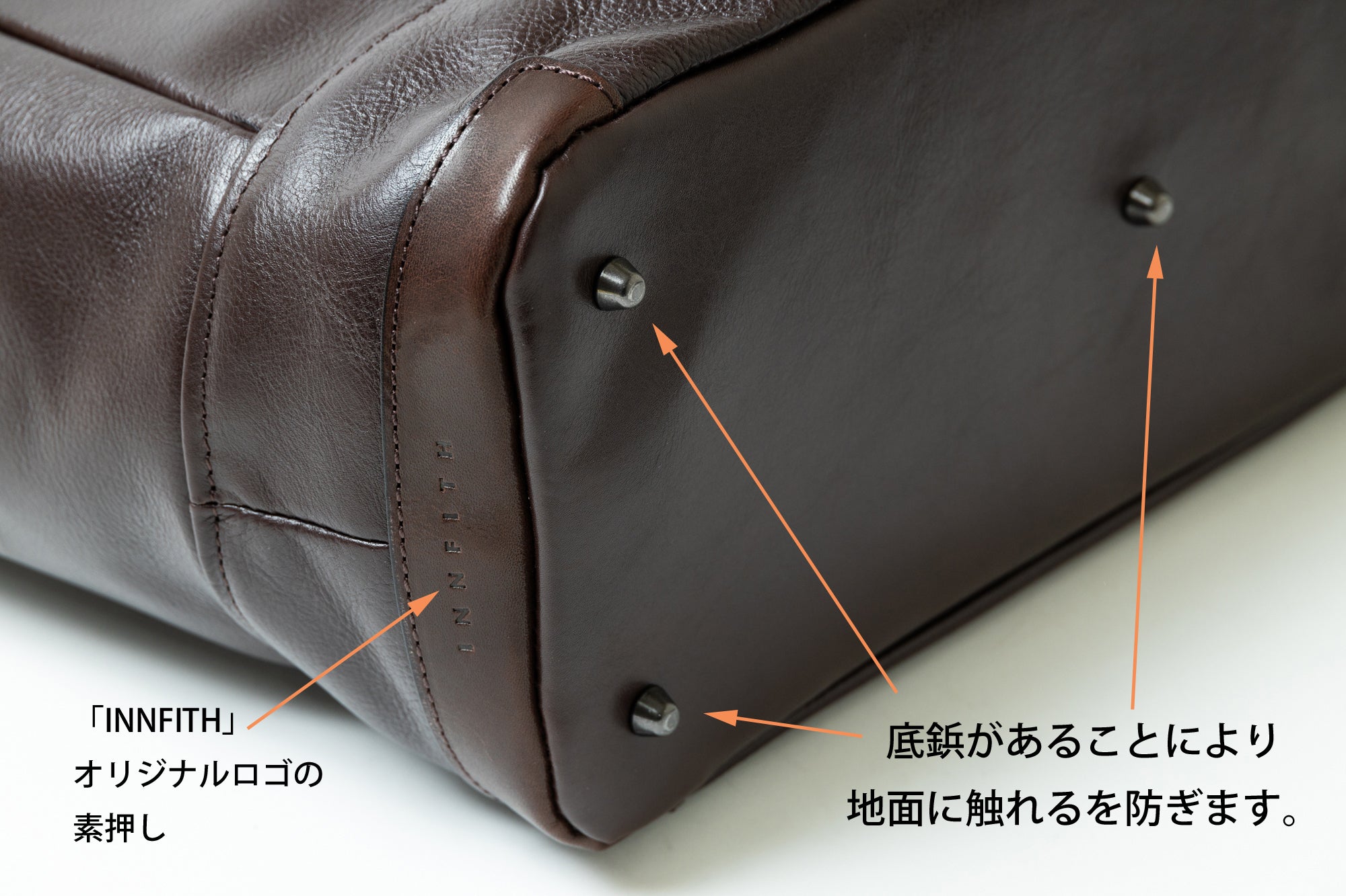 底の付属革には「INNFITH」の素押しがさりげなく入っています。