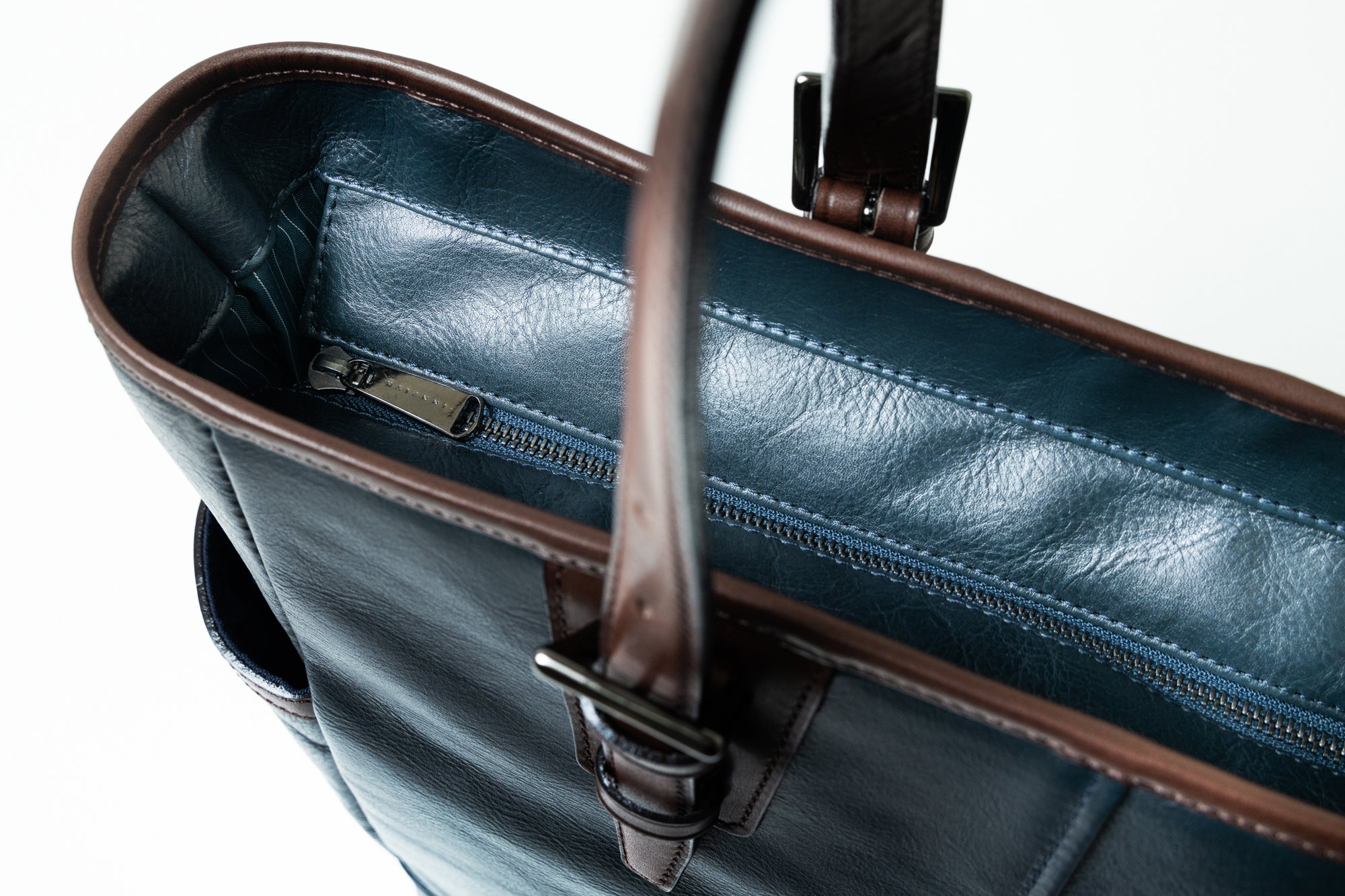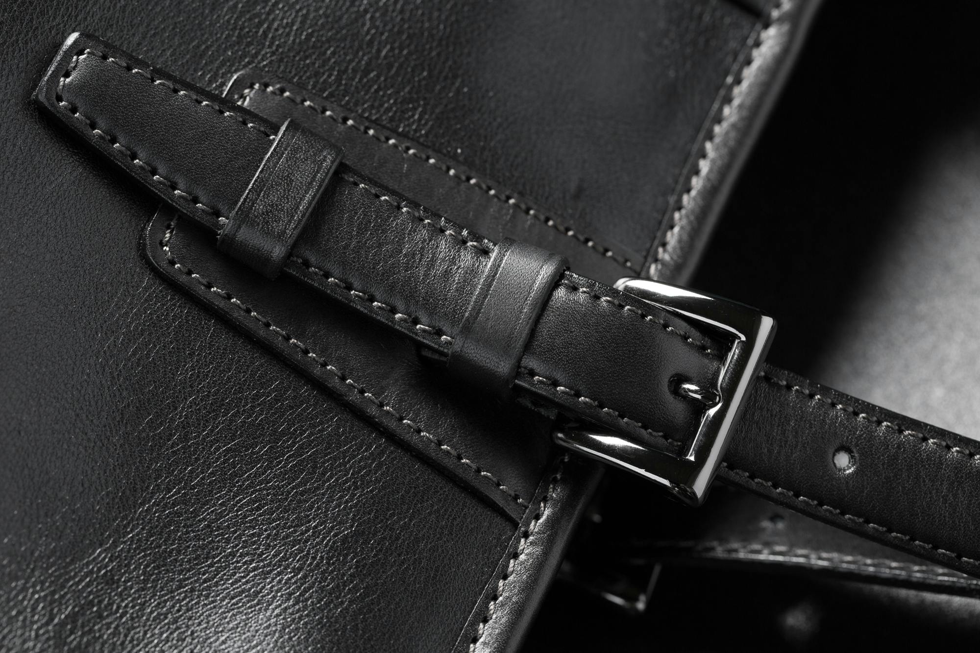 革の中にクッション材を挟み込み縫い上げる事により手触りが良く、荷物を持つときの負担を軽減します。