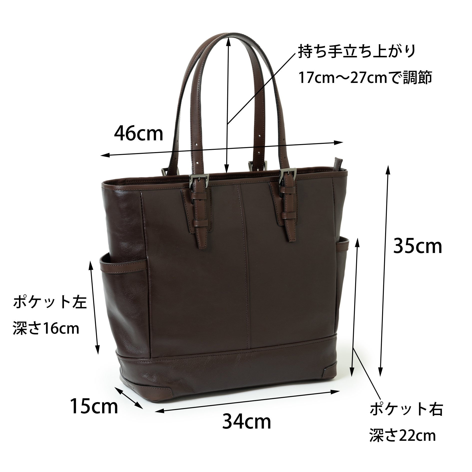 持ち手立ち上がり:17cm~27cmで調節可能