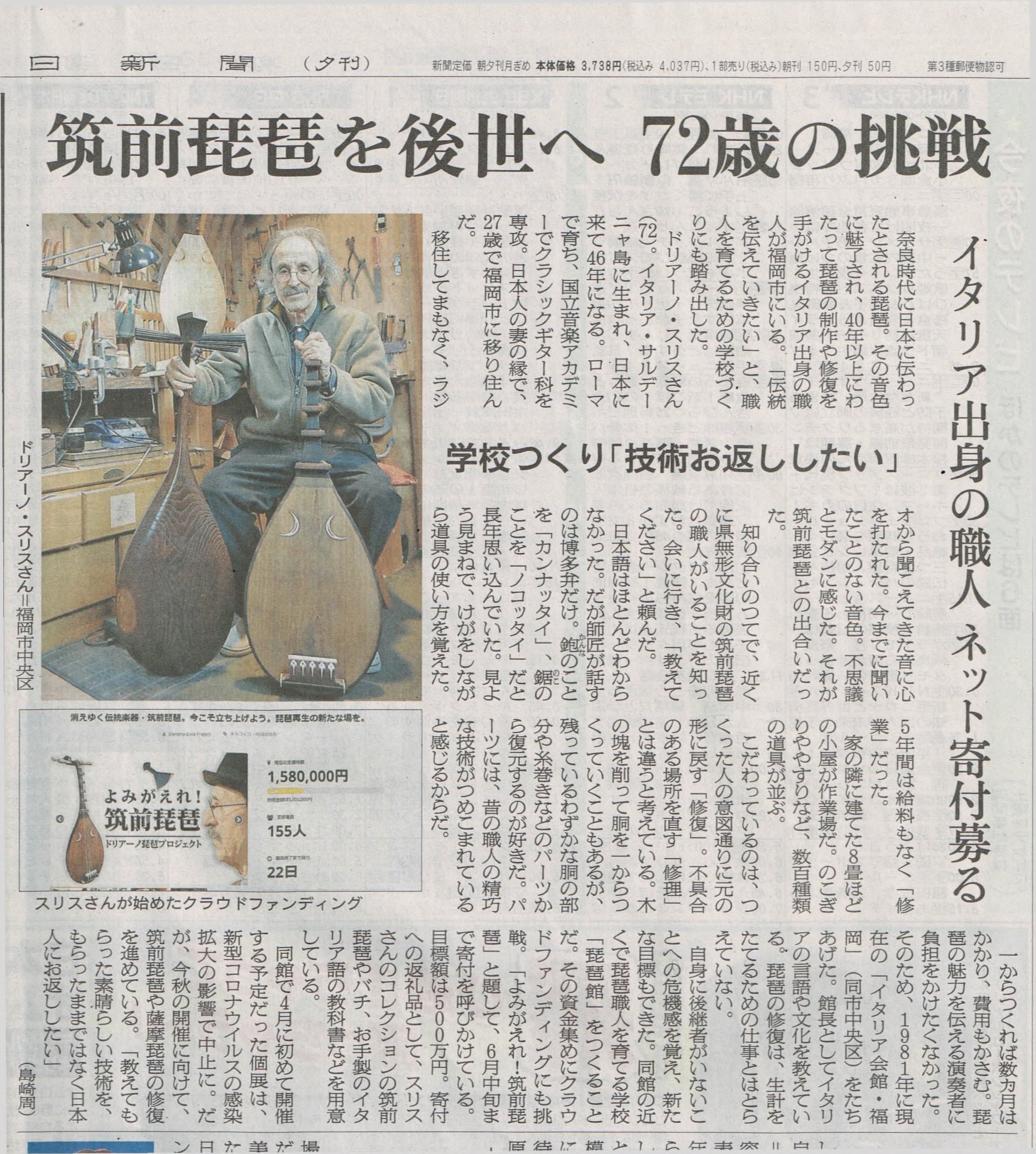 2020年5月25日の朝日新聞(夕刊)